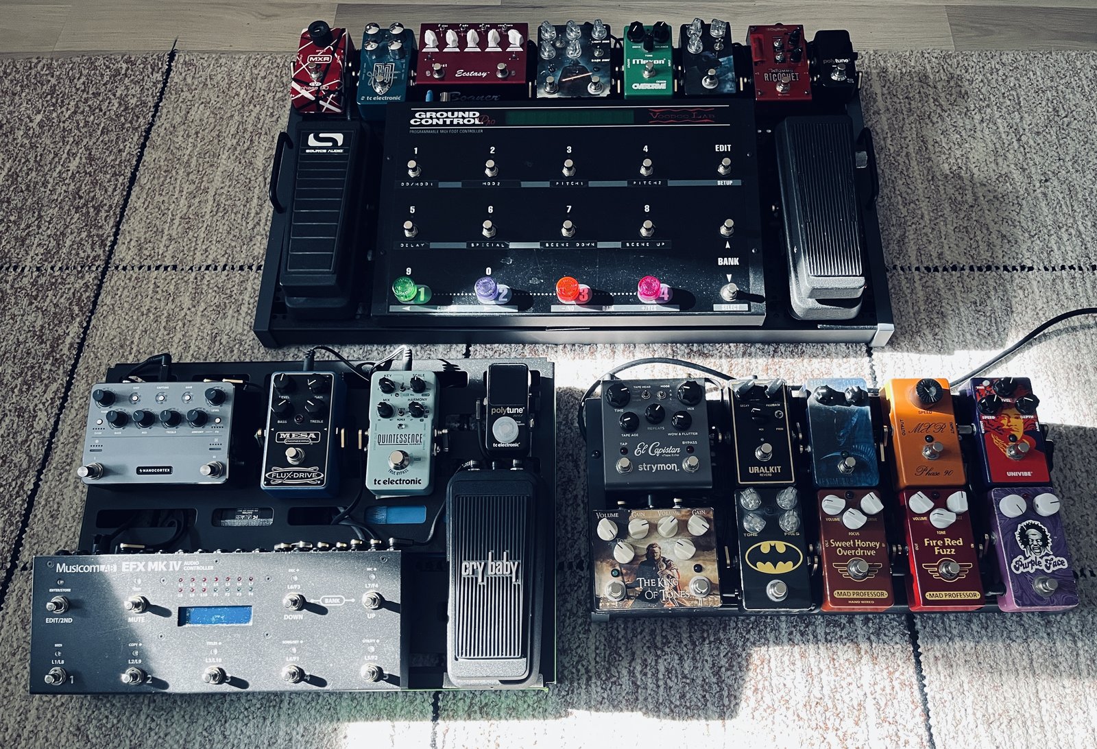 Kuvaus: | Progemetallin ja sankarihevin tykitystä muita tyylejä unohtamatta. Soittoa voi käydä kuuntelemassa esim. täällä: https://www.youtube.com/channel/UCw6fgkRAySLmZkh84m-MceQ sekä täältä: https://www.youtube.com/channel/UCSHaaDcbui2K-5cuDEI0lUw/videos?disable_polymer=1 Kitarat: - Ibanez RG3120 FDAM (Dimarzio Steve's Special/Air Norton) - Ibanez RG3727 FZ (BKP Aftermath/Dimarzio Liquifire) - Ibanez SIX28FDBG - Ibanez Jem Jr (Dimarzio Evolutions/Schaller Lockmeister) - Ibanez AW40NT - Jackson USA Soloist SL2h (Lundgren M6/Dimarzio Liquifire) - Jackson Kelly JS32T (EMG 81/85) - Jackson Rhoads Minion - Fender American Standard Stratocaster (Fender Fat 50's/Lundgren Vintage 60's) - Gibson Les Paul Signature T (BKP Riff Raff/Gibson 57 Classic) - Custom-Telecaster (BKP The Boss/Dimarzio Twang King) - Dean Edge 09 -basso Vahvistimet: - Mesa Boogie Mark IV A - Mesa Boogie Single Rectifier - Mesa Boogie Rectifier 4x12 Trad - Marshall JMP 2203 - Marshall Origin 20 - Engl Powerball II - Fender Sidekick Reverb 25 - Chief Custom Cabs Model JJK 2x12-kaappi Efektit, pedaalit yms: - Fractal Audio Axe-Fx II - Neural DSP Nano Cortex - Two Notes Torpedo Live - Two Notes Torpedo Captor X - MusicomLab MK IV - Ibanez TS-808 reissue - Bogner Ecstasy Red - Digitech Whammy Ricochet - Digitech Whammy DT - Mesa Boogie Flux-Drive - Vader Overdrive (By s0r0666) - Source Audio Dual Expression - Strymon El Capistan - Strymon Zuma - Strymon Ojai x 2 - Strymon Ojai R30 - Jaska's Music Garage Purple Face-fuzz - Nektar Expression pedal - Mad Professor Sweet Honey Overdrive (HW) - Mad Professor Fire Red Fuzz - Maxon OD808 - MXR EVH Phase 90 - MXR Script Phase 90 (Custom shop) - TC Electronic The Dreamscape - TC Electronic Quintessence Harmonizer - TC Electronic Pipeline Tap Tremolo - TC Electronic Dark Matter - TC Electronic Polytune Mini Noir - TC Electronic Polytune 3 - Dunlop Univibe (Hendrix 70th anniversary) - Dunlop Cry Baby 535Q - Dunlop Cry Baby Classic - Dunlop Cry Baby Junior - Dunlop Cry Baby Original - Boss Metal Zone (Diezel -modi) - Boss DS-1 (Vintage-modi) - Boss MS-3 - Proco Rat 2 - Rockboard Tres 3.0 - Rockboard Quad 4.1 - Rockboard Cinque 5.2 - Temple Audio Solo 18 - Temple Audio Trio 28 - Tonex One - EHX Switchblade - EHX Big Muff Pi - Midi Solutions Midi Thru - Midi Solutions Midi Merge - Morningstar ML5 - Engl Z11 - Voodoo Lab Control Switcher - Voodoo Lab Ground Control Pro - patteri-Marsu (modattu) |