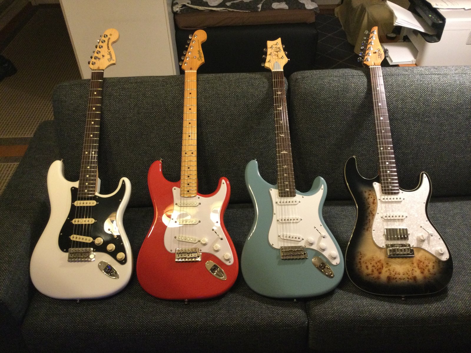 Kuvaus: | Kitarat: 1. Fender Performer stratocaster sss 2023 rw Arctic White 2. PRS SE John Mayer Silver Sky Stone Blue 2025 3. Squier CV 50 Stratocaster Fiesta Red 2024 4. JET JS-450 HSS QTBR 2024 5. LAG Tramontane T70A-BLS 2025 Vahvistimet: 1. Fender Bassbreaker 007 LTD Tweed 2. Vox Pathfinder 10W 3. Vox Mini Go 3 4. Supro Blues King 8" 1W Pedaalit: HOF Reverb (mini) Mad Professor Simble OD Mad Professor Big Tweedy Drive Maxon OD808 Wampler Tumnus overdrive V2 Korg Pitchblack viritin |