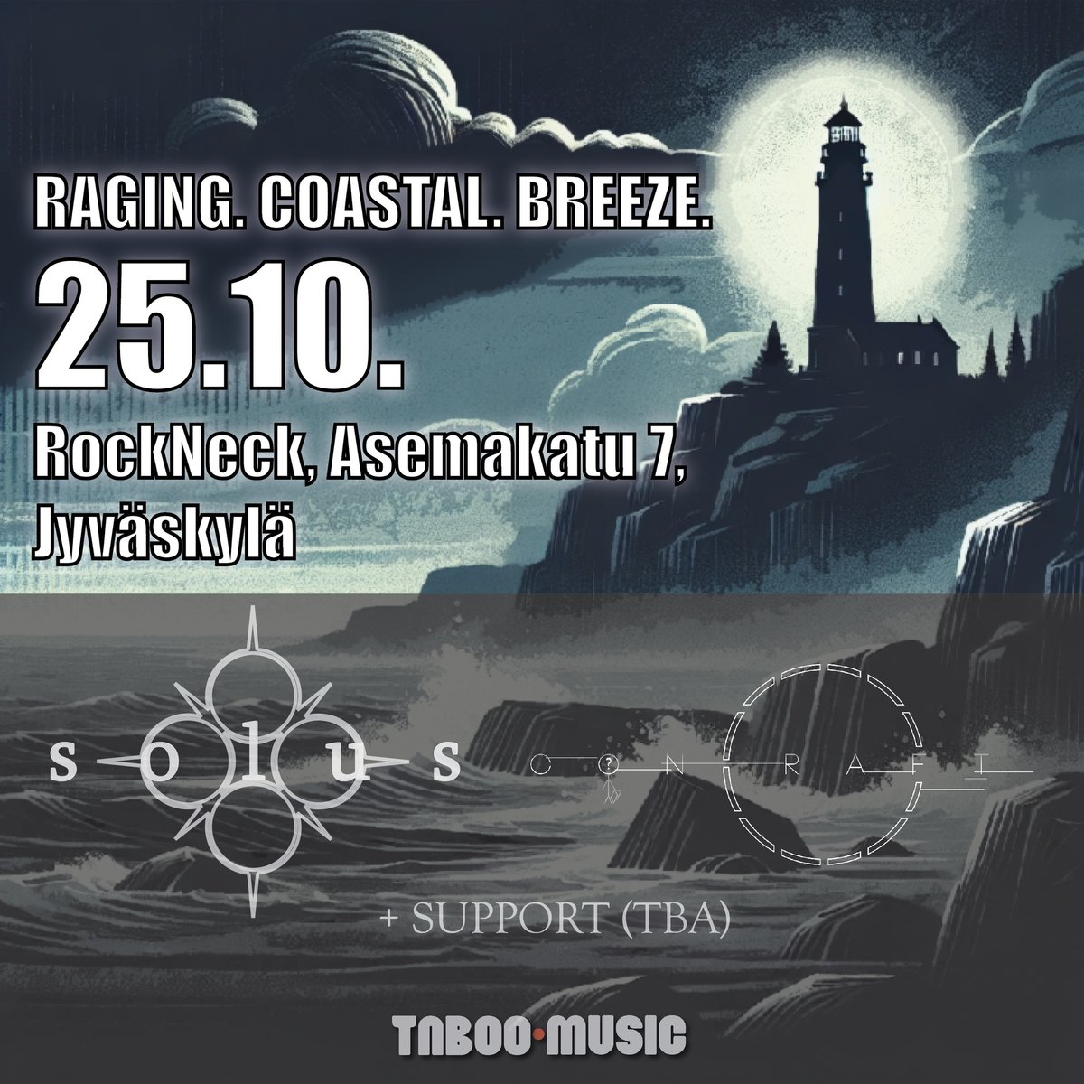 Lisätietoja: | Syystuuli puhaltaa kaupunkiin länsirannikolta raskasmetallia! Melodista, matalavireistä takomista esittävä Solus sekä intensiivisen groovaavaa metallia tarjoileva conCraft valtaavat Jyväskylän RockNeckin lavan lauantaina 25.10.2025. Liput 8 ¤ ovelta tai ennakkoon RockNeckistä sekä Avenue Bar & Dinerista (Kauppakatu 28). Klo 18 Ovet Klo 20 Showtime |