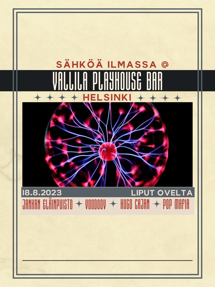 Lisätietoja:Sähkö ilmassa! Funkkia, poppia, räppiä, rockia - tanssijalka vipattaa Playhouseen 18.8! Liput ovelta. 8e