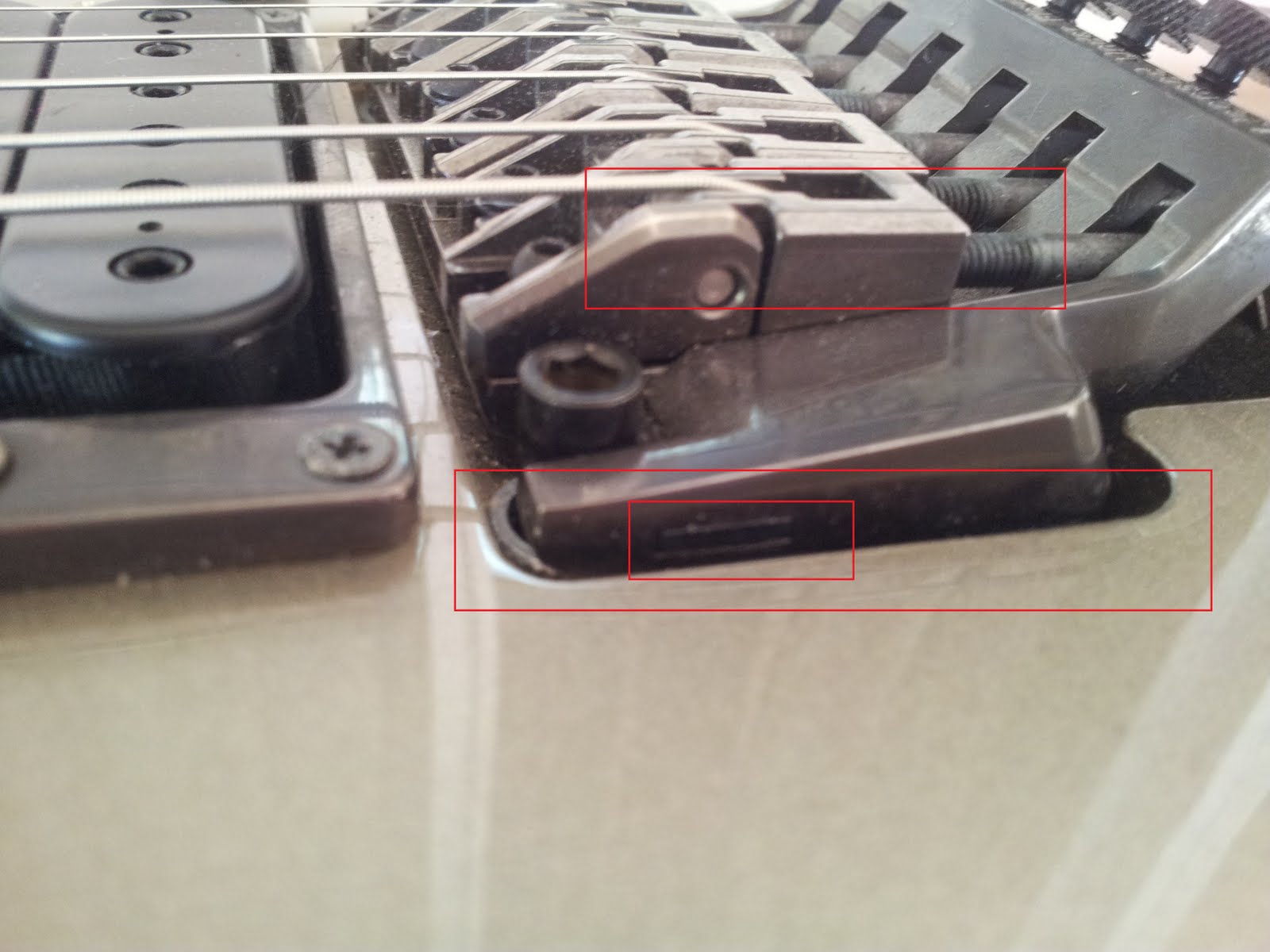 Kokeilepa vielä varmuudenvuoksi venyttää ne kielet... Uudet kielet kun tartee sen :) jos ei toimi niin voi vaihtaa ne palat. Jos muistan oikein niin se palojen kieliin ottava osa on tasainen eli voit alkuun myös laittaa palat toisinpäin. Eli käännä paloja 90 astetta. Näin se mahdollinen ura ei haittaa... Musiikki ei tunne rajoja, eivätkä kitaristit tunne nuotteja. |
