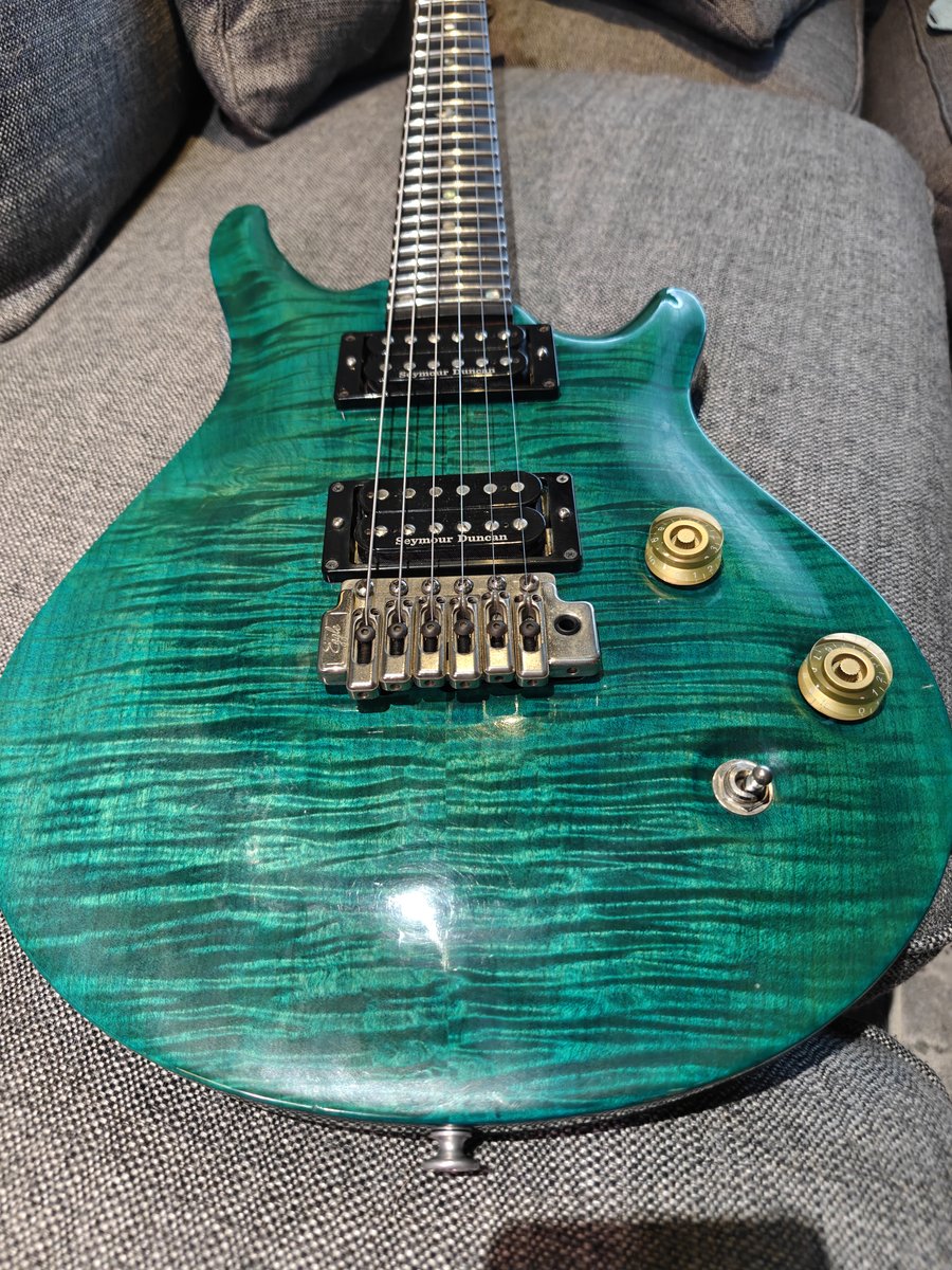 | Myydään otsikon kitara, valmistettu Koreassa. Ostettu Thomannilta tänä vuonna. Speksit: https://www.thomann.de/fi/esp_ltd_alexi_ripped_sawtooth.htm Kitaran vire on C-standard. Jälkikäteen asensin ENGL-hardtailerin, jotta saa floikan blokattua ja pääsee esim. drop A#-vireeseen. Floikka kelluu taas nopealla toimenpiteellä, eli asetus vaihdettavissa lennosta. https://www.thomann.de/fi/engl_hardtailer_trem_block_system.htm Lisäksi löytyy EMG-preamp potikka (push-pull), jolla saa rouheat soundit aikaan. Tämän kitaran E-II-versiosta (ja edwardsista) löytyy tämmöinen boost-piiri jo tehtaalta tullessaan, mutta LTD-versiossa uupuu ja siksi asensin jälkikäteen. https://www.musamaailma.fi/fi/emg-a … HlLtj8IR9H1R3BDAZXSKlUaAkMrEALw_wcB Kitara on aika hyvässä kunnossa, ehjät sakarat, pieniä käytön jälkiä ja vähän kiillotusta siinä kohtaa missä käsi lepää normaalissa soitossa. Mukana ESP -kova kotelo. Mieluummin nouto, mutta postitus onnistunee ostajan vastuulla. Testaamaan pääsee myös kun sovitaan aikataulu. Vaihdosta en ole kiinnostunut tällä hetkellä. Hinta: 1300 € | |