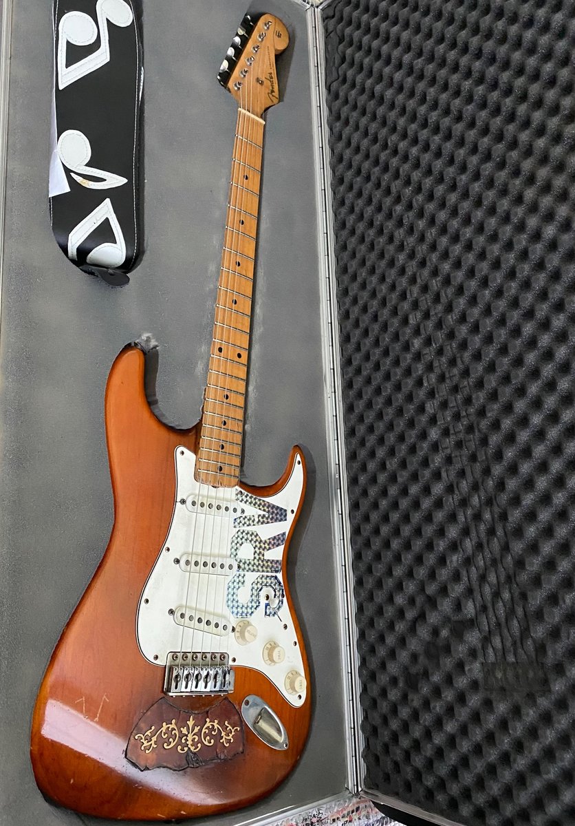 | Hieno esikuvalleen kaikkia pikku yksityiskohtia myöden uskollinen Monster Ampsin (Juha Mäntymaa) luomus 14 vuoden takaa. Perustana v. 2007 Fender American Vintage Series 57's Stratocaster. Ei siis mistään tarvikeosista rakennettu. Dunlop 6100 nauhat, joissa jonkin verran kulumaa. Yläsatula (luu) vaihdettu Kitarapajalla uuteen. Muokatut Seymour Duncan 60's "Antiquity" mikit, nitrolakka, sutjakka ja helpposoittoinen kaula ym ym. paino 3,6 kg. Taidokkaasti relikoitu. Esikuvansa mukainen flight case. Nuottikuvioinen SRV-hihna. Liput, laput ja alkuperäinen lasku  (3725,-) tallella. Nyt yli kymppitonnia halvemmalla kuin Fenderin vastaavat... ja Fenderhän tämäkin on. Voin tarvittaessa lähettää lisää kuvia. Nouto. Voin toimittaa PK-seudulle. Kun testaat, et voi olla ostamatta…Tarjouksiakin harkitaan. Mielellään ei vaihtoja, mutta joku esim mex tele tai jv squier tele tai strato voisi tulla kysymykseen. Hinta: 2200 €  | |