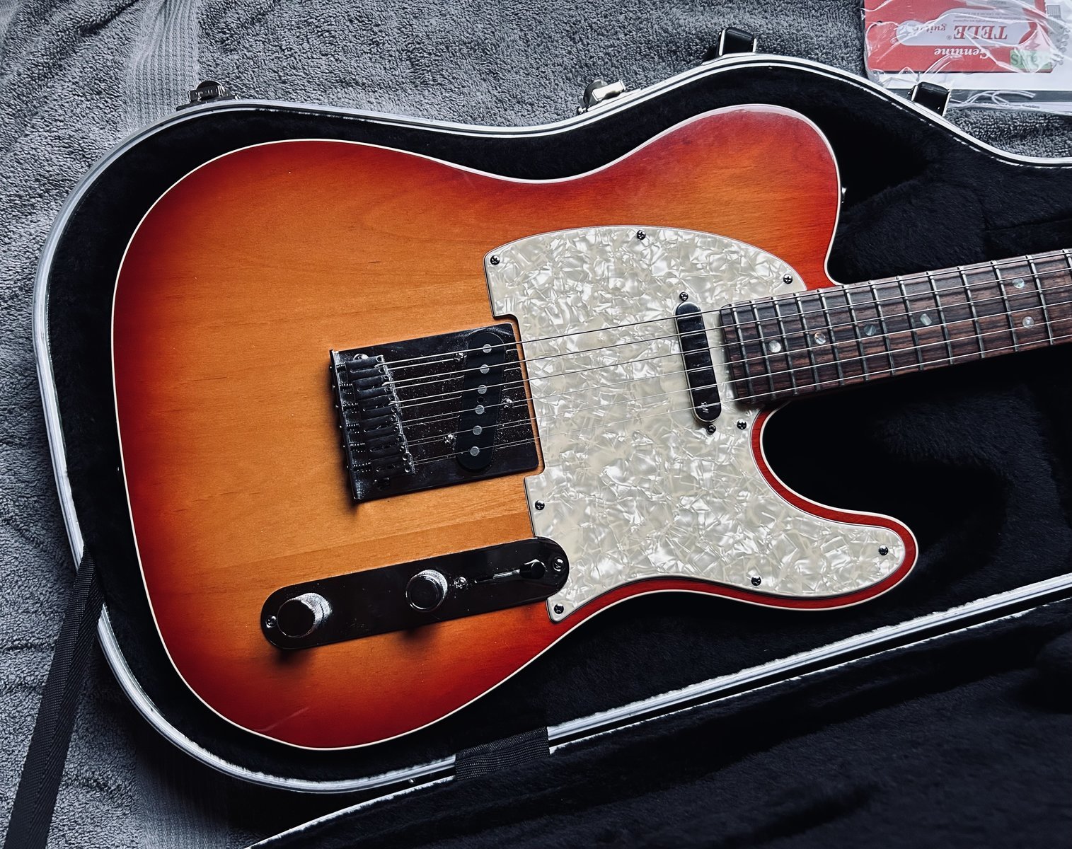 | Tästä lähes täydellinen Tele. Kevyt, hyvä soittaa ja hyvät mikit. Arsenaaliin ois vaan kiva saada Tele jossa ainakin kaulaasennossa on Wide Range- tai tavallinen humbucker. Tässä Noiseless-mikit, ja S1-switchin (volapotikassa) avulla keskiasennosta saa series/parallel-valinnan. Kova laukku ja liput-laput mukaan. Vaihdossa siis: -SH tai HH Telecaster -Kotzen Tele käy myös -(Villinä korttina 50’s-specseillä varustettu Stratocaster, two-tone burst ja vaahteraotelauta tai -Butterscotch Blackguard Tele) Osamaksuna Mexicon versio käy myös. | |
