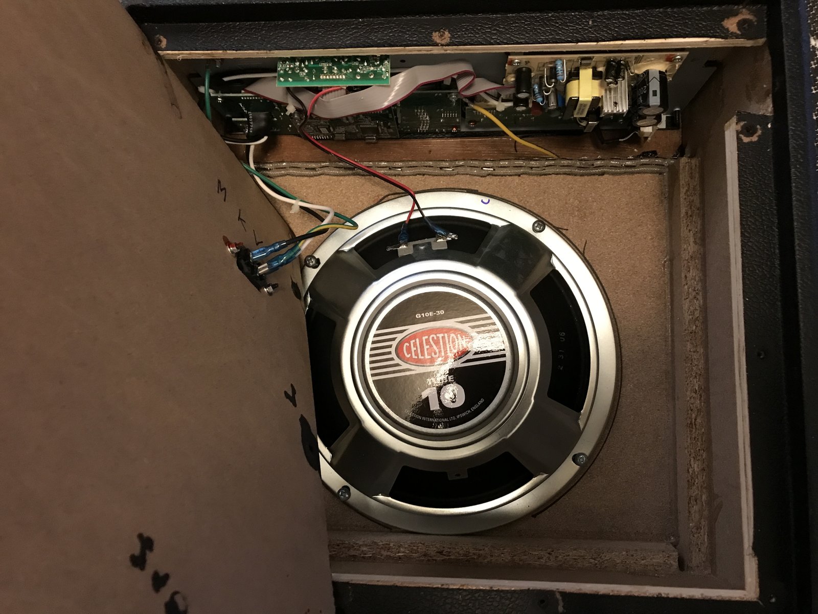 | Toimiva vahvistin 80-luvulta. Sisällä alkuperäinen Celestion G10L-35. Euro-sähköt. Nouto/ Matkahuolto Hinta: 150 € | |