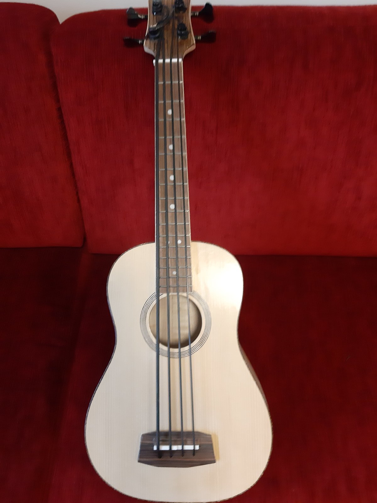 Käsin tehty muhevasointinen bassoukulele myynnissä: -kansi suomalaista kuusta -pohja, sivut ja kaula vaahteraa -otelauta intialainen ruusupuu -kontaktimikki kannessa tallan alla -mensuuri 535 mm -kokonaispituus 760 mm -kielet Aquila Thuderblack Testaus ja nouto Landesta Hinta: 155 € | |