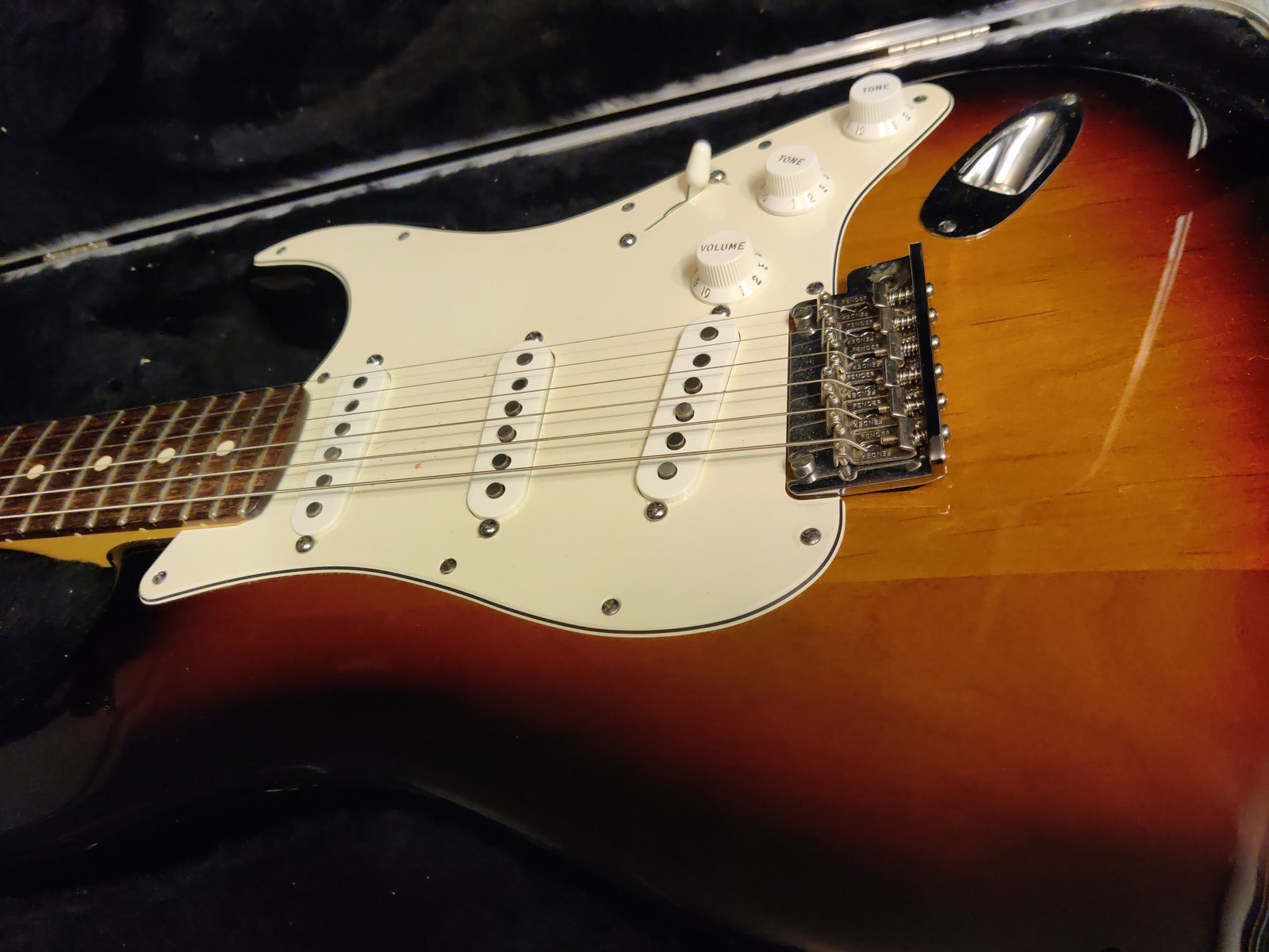 Myydään hieno kuntoinen ameriikan strato. Ulkoisesti todella nätti. Mukaan laukku avaimineen, hihna, piuha ja puhdistusliina sekä kampi elikkäs kaikki mitä mukana on aikoinaan tullut. Kulkeutuu tarvittaessa huomenna pääkaupunkiseudulle. Body Material Alder Body Shape S-Style Body Type Solid Body Bridge/Tailpiece Type Tremolo Bridge Finish Pattern Sunburst Finish Style Gloss Fretboard Material Rosewood Fretboard Radius 9.5" Neck Material Maple Number of Frets 22 Nut Width 1.6875" Pickup Configuration SSS Scale Length 25.5" Hinta: 1190 € | |