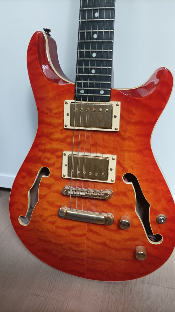 Nätisti pidetty vain kotisoitossa ollut PRS kopio kaupan. Muusikoiden.net kimppatilauksesta aikoinaan suoraan tehtaalta ostettu. Otelauta ebenpuuta. Mikkivalitsimen muovinuppi jossain, mutta uusia saa muutamalla sentillä. Ei edes sitä kuuluisaa vyön soljen aiheuttamaa ihottumaa. Hinta: 200 € | |