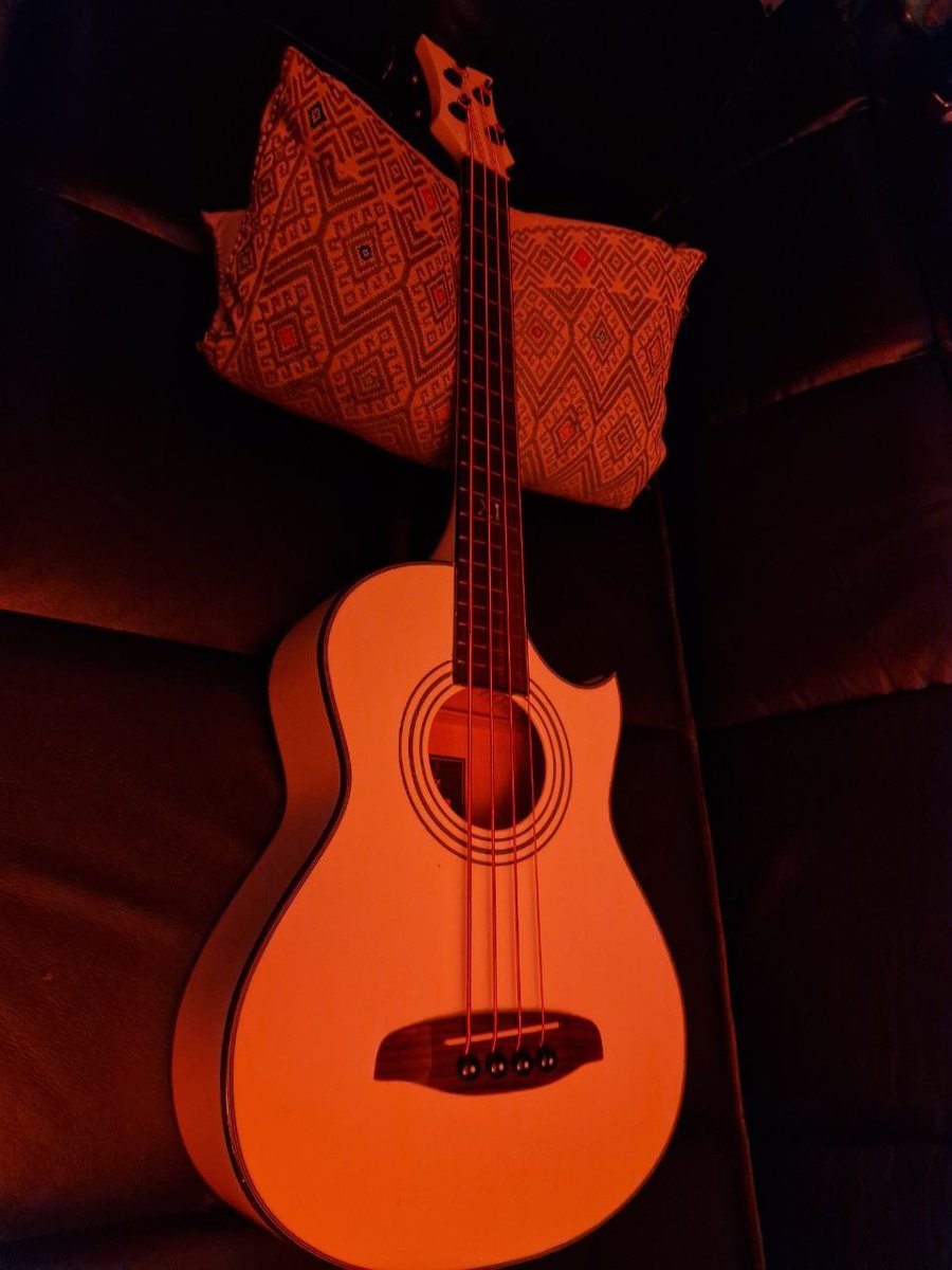 Ostakaa nyt herra varjele tämä niin allekirjoittanut saa rumpukamoja!) Pienikokoinen erityinen akustinen nelikielinen basso; Ehjä, keikkailtu, soitettu, huollettu, pysyy vireessä ja elektroniikka toimii. Kaikukopassa pieni dentti (näkyy kuvassa), ei vaikuta sointiin tai noin muuten häiritse menoa, huomioitu hinnassa. Keissiä / pussukkaa ei ole mutta tarvittaessa pienestä lisähinnasta keksin jonkin sopivan. Pikaviestit menee herkästi ohi. Hinta: 275 € | |