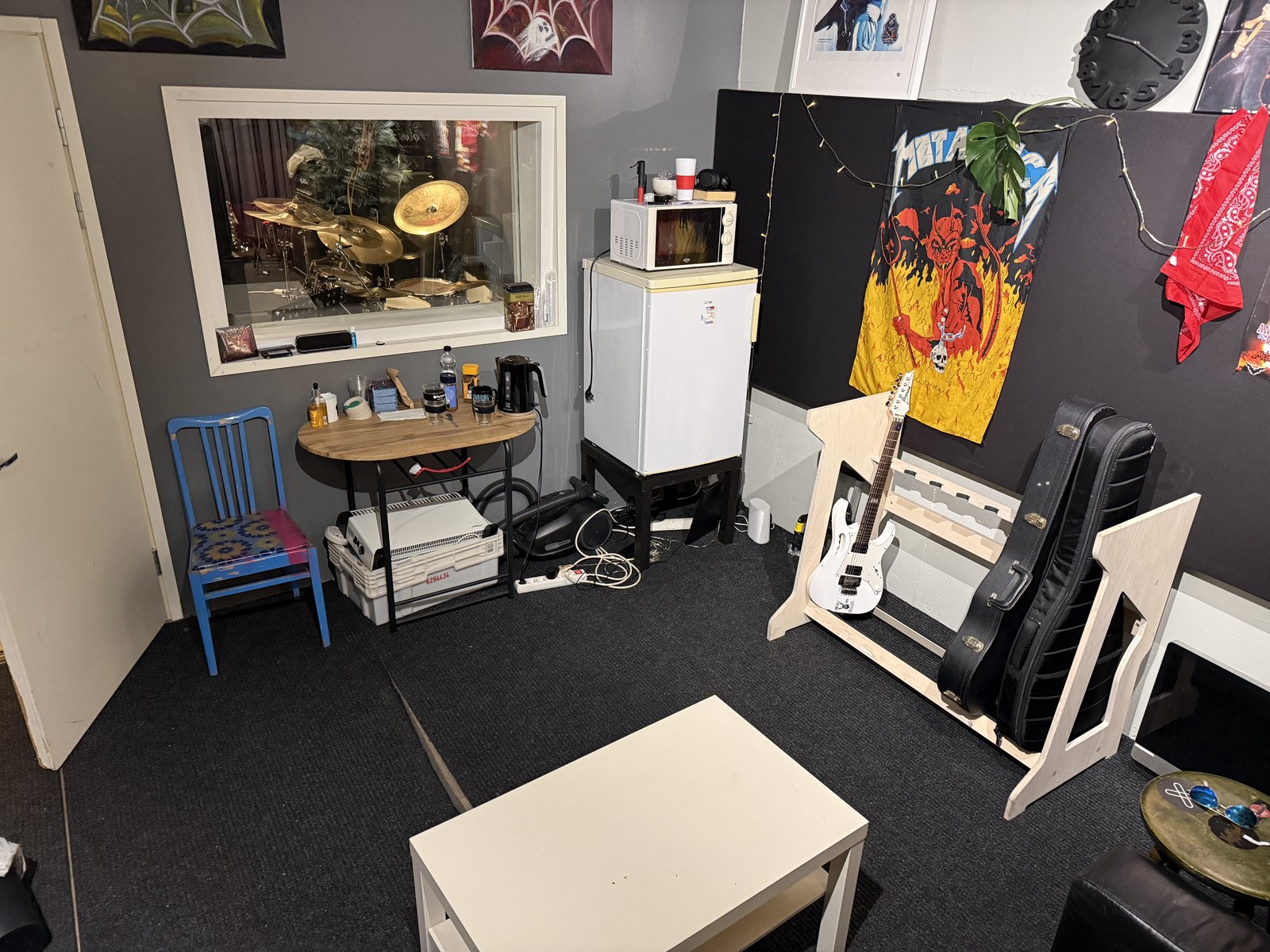 Erinomaista treenistilaa vapaana! Pienempi huoneista oletettavasti rakennettu tarkkaamoksi. Meillä se on toistaiseksi toiminut rentoutumistilana. Se soveltuu esim. läppärityöskentelyyn. Harkinnassa on ollut hommata tuohon ikkunan eteen sopivampi pöytä studiomonitoreille yms., mutta ei se ole ollut kenelläkään tärkeysjärjestyksessä ensimmäisenä :) Jos näet tässä potentiaalia tarkkaamokäyttöön niin ei ole esteitä. Tai jos tilasta halutaan pieni soittotila niin sekin järjestynee. Huoneen strategiset mitat n. 3,5 m x 3,5 m. Isompi huoneista soveltuu suoraan bändikäyttöön. Sen mitat on n. 3,5 m x 7,5 m, joten sinne mahtuu helposti kaksi bändiä. Tilassa treenaa tällä hetkellä yksi viiden henkilön bändi ja lisäksi kolme yksintreenaajaa, joten sinne mahtuisi helposti toinen kokonainen bändi. Myös yksinjammailijat otetaan hakuprosessissa huomioon, sillä kuten mainittu, osa nykyisestäkin porukasta treenaa yksin. Meillä on hyvä porukka, joista osa ei tunne toisiaan treeniksen ulkopuolelta lainkaan. Lähtökohtaisesti kaikki luottaa toisiinsa. Vuokrat maksetaan ajallaan ja tavaroista ja siisteydestä pidetään yhdessä huolta. Treenis on kiinteistössä, jossa on paljon muitakin soittohuoneita. Äänieristys on kuitenkin niin hyvä, että muiden soitto ei häiritse. Pääkäytävällä on WC:t ja saunatilakin on varattavissa. Tilan kokonaisvuokra on 750 ¤ ja se jaetaan henkilömäärän kesken. Tällä hetkellä meitä on seitsemän. | |