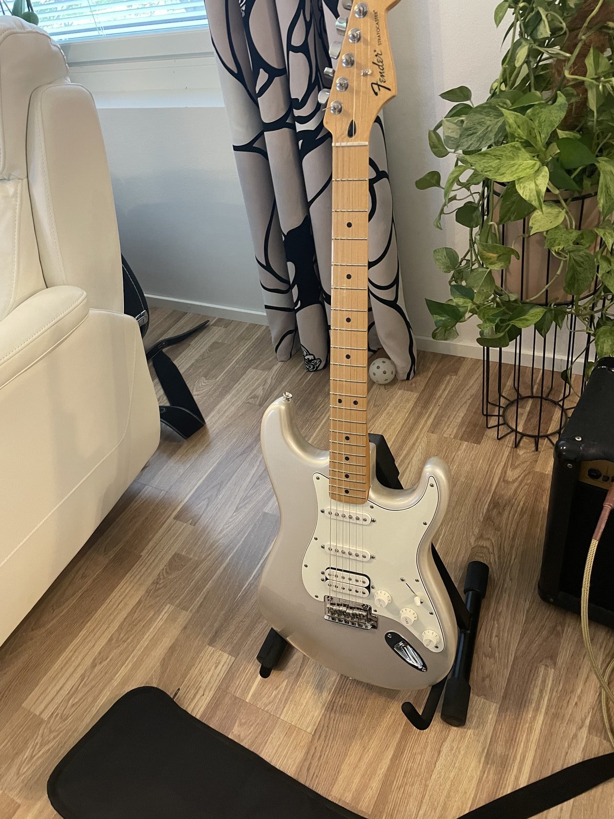 Myydään upea Fender Stratocaster HSS iOS, valmistettu Meksikossa. Kitara on kuin uusi – soitettu vain muutamia kertoja ja säilytetty aina kotona. Tyylikäs hopeanharmaa (silver) väri, vaahterakaula, ja monipuolinen HSS-mikitys (humbucker + kaksi single-coilia) tekevät tästä kitarasta täydellisen valinnan lähes mihin tahansa musiikkityyliin. Lisäksi iOS-liitäntä mahdollistaa yhteyden iPhoneen tai iPadiin suoraan äänitystä tai soittoharjoittelua varten. Tiedot: • Malli: Fender Stratocaster HSS iOS • Valmistusmaa: Meksiko • Väri: Silver • Kaula ja otelauta: Maple • Mikrofonit: HSS • Kunto: Kuin uusi • Mukana: Kitarapussi Hinta: 499 € | |