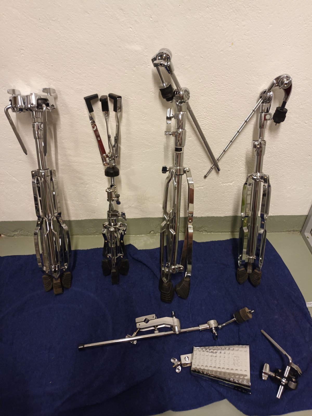 | Myydään toimivia telineitä, olleet vain treenikäytössä: Tama roadpro tuplatomiständi 80¤ Tama stagemaster virveliteline (lähes uusi) 50¤ Tama stagemaster symbaaliteline puomilla 40¤ Pearl symbaalipuomi (toiseen telineeseen kiinnitettävä) 20¤ Pearl jykevä symbaaliteline puomilla 40¤ Pearl lehmänkelloteline basariin 20¤ meinl kenny aronoff 6¼ lehmänkello 20¤ Yhdessä 30¤ Nouto lähtökohtaisesti, mutta Helsingin ja Porvoon suuntaan voi kysellä kuljetusta, jos sattuisi sopivan matkan varrelle. Hinta: 20 € | |
