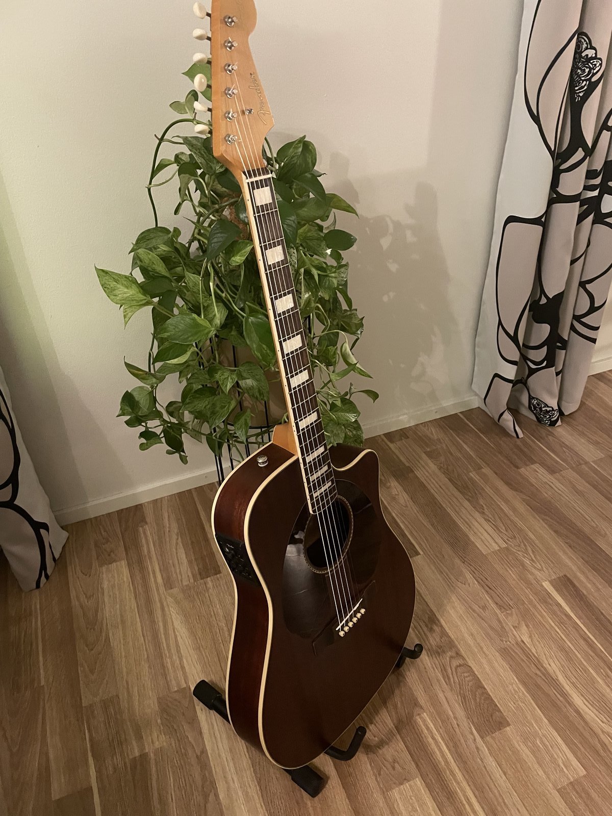 Hienosti soiva ja isoääninen akustinen -80 luvulta. Myyjän mukaan tehty samassa tehtaassa kuin -80 luvun alun S. Yairit ja lisenssillä rakennetut Lowdenit. Tämän kyllä huomaa äänessä ja laadussa. Kansi kuusta, otelauta ebeniä, kaula mahonkia, takakansi + sivut ruusupuuta. Pientä jälkeä kannessa. Vaihdettu aikanaan Groverin virittimet sekä lisätty B-Bandin mikki + hihnatappi. Mukaan kova laukku. Interwebs ei osaa kertoa merkistä paljoakaan, joten kannattaa tulla testaamaan. Hinta/ laatusuhde 10 ++. Testaus ja nouto Hgin Vuosaaressa tai Vallilassa, ei vaihtoja. Hinta: 750 € | |