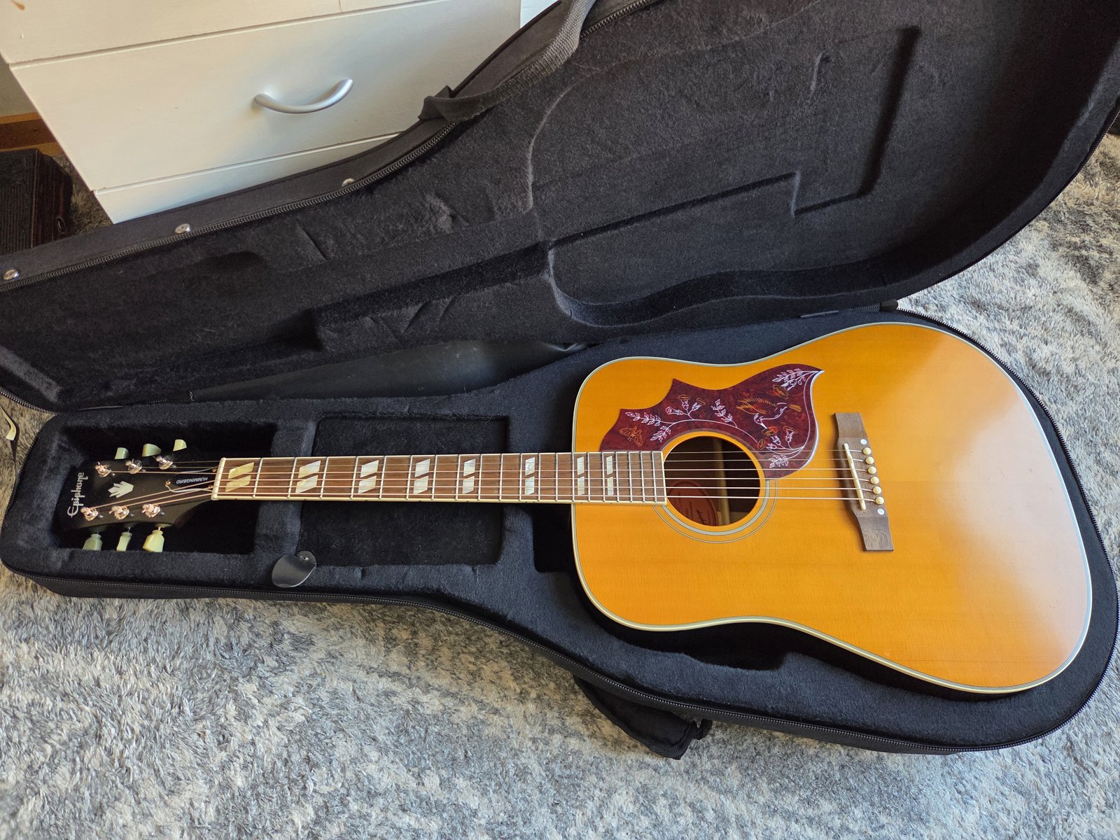 Myydään Epiphonen Inspired by Gibson Hummingbird kitara. Siistissä kunnossa. Mukaan erinomainen puolikova laukku, jossa kitaraa kelpaa säilyttää kuiva talvikausi kostuttimen kanssa. Mukaan myös 2 settiä kieliä (katso kuva). Nouto Vuosaaresta tai lähetys ostajan piikkiin. Hinta: 600 € | |