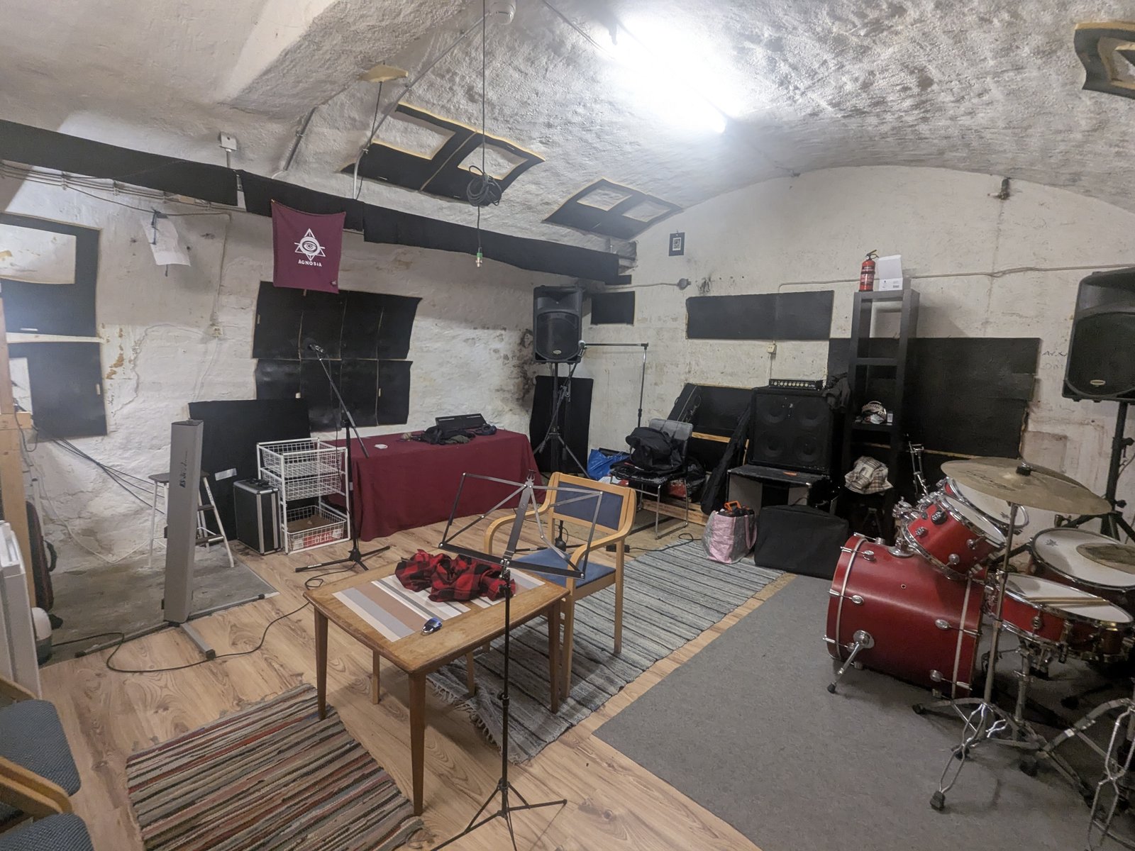 | Keskustan tuntumasta treenitilaa tarjolla, kerrostalon kellaritila, hyvä akustiikka ja edullinen vuokra, soittoaika 06:00-22:00, ei vessaa mutta vesipiste kuitenkin löytyy, lähellä huoltsikka, jossa voi käydä sitten isommilla tarpeilla. Tilassa treenaa jo toinen bändi (suomimetalli), joten puolikas tilasta käytettävissä (n. 10 m2). Kämpän mikseripöytä ja laulakamat käytettävissä sop. mukaan. Kysy lisätietoja! | |