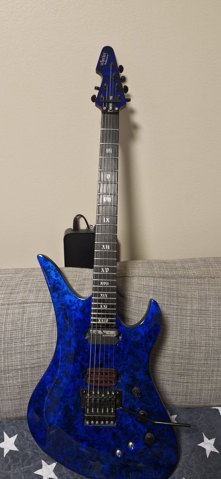 Siitä hieno schecter seuraavalle onnekkaalle, lähtee sen takia kun ei vaan ole tilaa enää. Näitä ei ihan kauheasti ole näkynyt, myöskään tällä värillä. Speksejä: -Swamp Ash -Maple/Padauk, Set-Neck w/Ultra Access kaula -Ebony otelauta -25.5” skaala -Thin C kaulaprofiili -24 X-Jumbo, stainless steel nauhaa -Schecter USA Apocalypse-VI Tallamikki ja sustainiac kaulassa -Volume/Volume/3-Way (Pickup) Switch/2-Way On-Off Sustainiac Switch/3-Way Sustainiac Mode Switch -Floyd rose 1500 talla johon vaihdettu iso messinkiblokki -Grover rotomatic 18:1 virittimet Yhteydenotot pikaviestillä tai perus viestillä. Puhelimeen en kerkeä aina vastaamaan. Ei laukkua tai koteloa joten nouto Turengista Hinta: 800 € | |