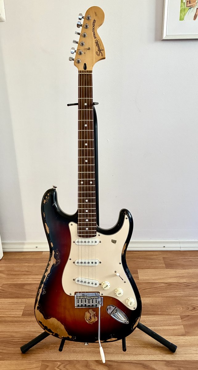 Olis tällänen laatu strato minkä voisin vaihtaa lyhyemmän skaalan kitaraan. Kitarasta löytyy paahdettu vaahtera kaula, Ruusupuu otelauta jossa 22 teräs nauhaa. Lukko virittimet ja teräs talla Relikoitu nitrolakka. Lisää infoa saa kysymällä. | |