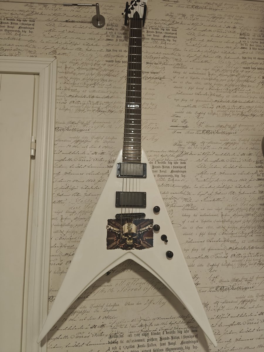 Vuoden 2009 Flying V orkkiskeissillä, siistissä käyttökunnossa. Mahonkia ja ruusupuuta, kaula 60’s slim taper, mikit 496R & 500T. Alkuperäiskunnossa pl. TUSQ satula, ABM talla ja kielten pitimessä TonePros lukkotolpat (alkuperäiset raudat tallessa). Tällä hetkellä C standard vireessä 12-54 kielillä. Hinta: 1650 € | |