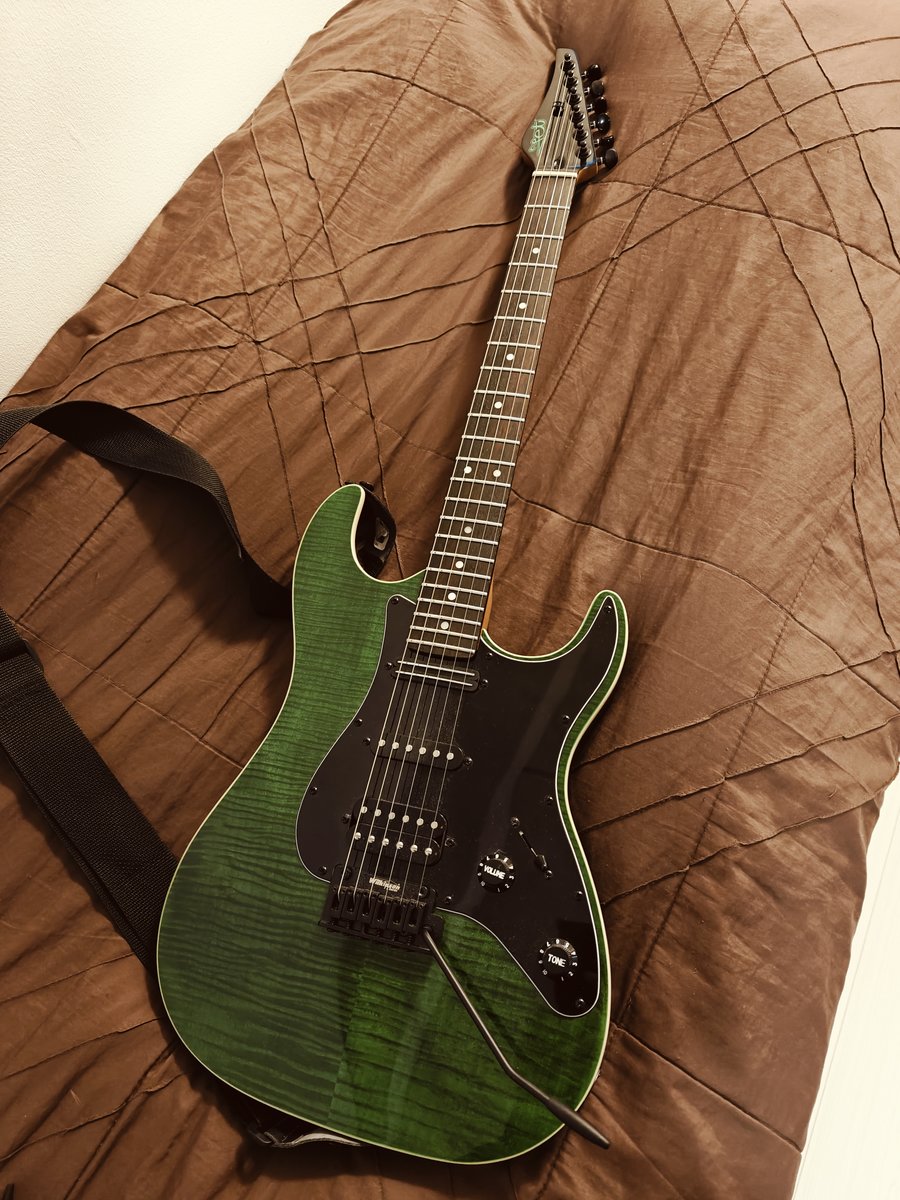 Aivan loistava ekan vuoden Samick, mitkä tehtiin Koreassa, Samickin ostettua Valley artsin, tietäjät tietää. Todella voimakas linnunsilmä vaahterakaula, jossa täydellinen soittotuntuma ja viimeistely. tarina kertoo että valley artsin jäämistöä olisi käytetty näissä. Valley arts oli siis jenkki custom shop paja, mikä teki todella kalliita high end kitaroita. Mikit vaihdoin Seymour Duncan SH-11 ja 2x Fender Custom shop texas special. Pelkästään mikkien arvo käytettynä on 200¤. Aidot selmiäisupotukset otelaudassa. Ei nauhakulumaa ja lähestulkoon täydellinen kaula soittotuntuman suhteen. Nouto, koska kovaa laukkua ei ole. pari pahvilootaa vielä on, mutta säästän niitä kalliimpien kitaroiden mahdollista myyntiä varten. Hinta: 400 € | |