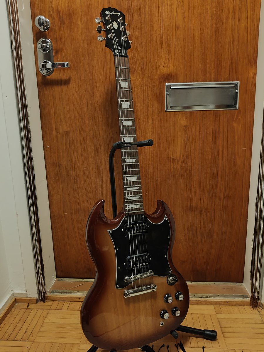 Erinomaisen siisti 45-vuotias SG kaupan. Täysin alkuperäinen, ei modauksia eikä korjauksia. Tar Back -mikit. Mukaan saman aikakauden muovikotelo. Hinta: 2500 € | |