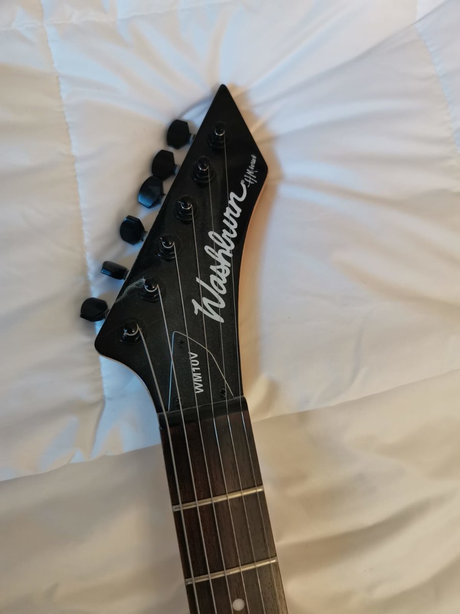 Edullisen pään Warlock tarjolle. Soiva peli, käy ja kukkuu moitteetta. Nauhat kunnossa, kaula suora ja rauta säätyy. Tarrat saa pois tarvittaessa. Mieluiten nouto. Hinta: 120 € | |