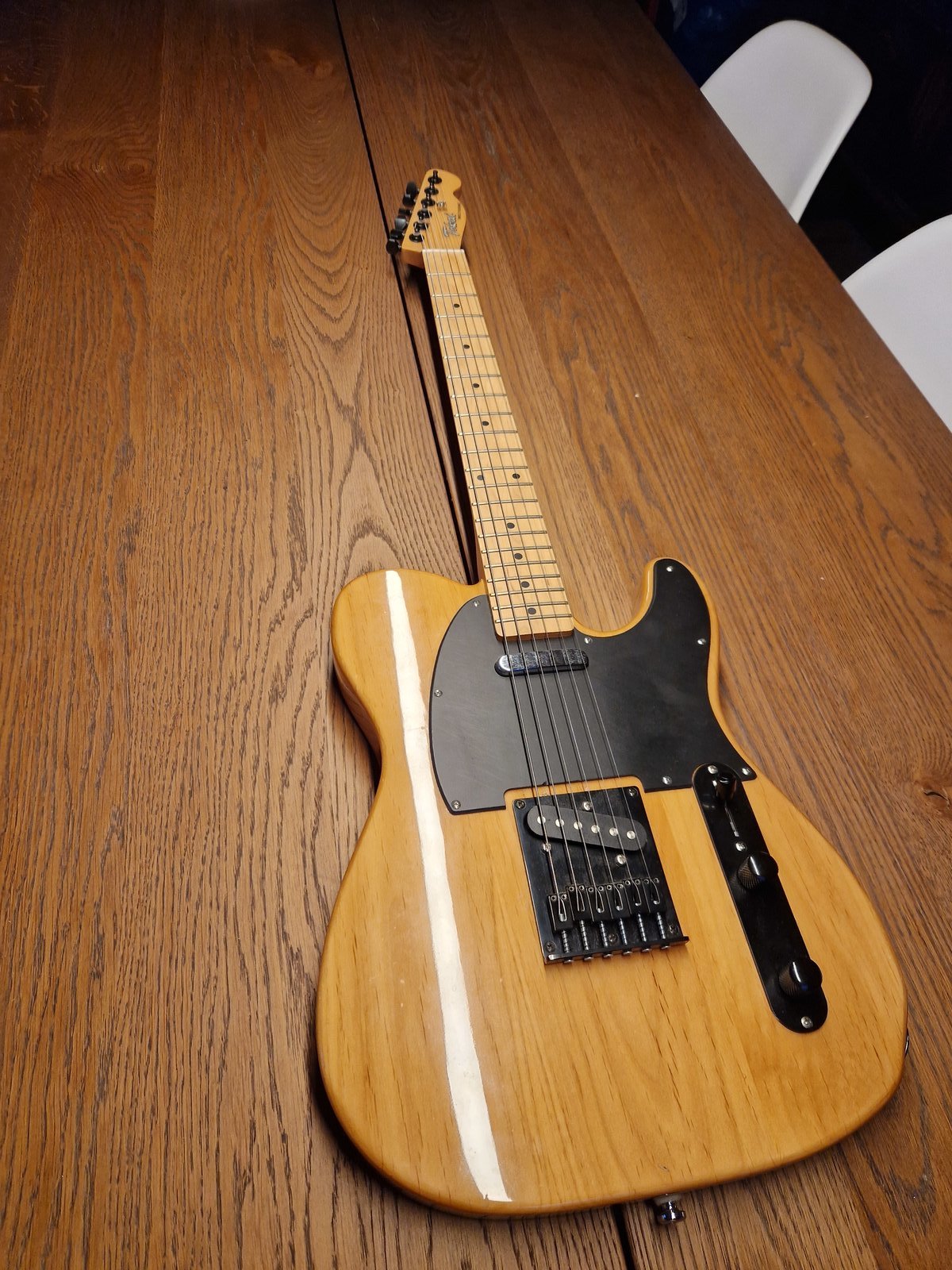 Vuoden 2013 Kiinassa valmistettu Telecaster. Edellisen omistajan toimesta modailtu, vaihdettu musta hardware, lukkovirittimet. Tonepotikka tästä täytyy uusia, muuten soiva peli joka yleisilmeeltään siistissä kunnossa. Hinta: 300 € | |