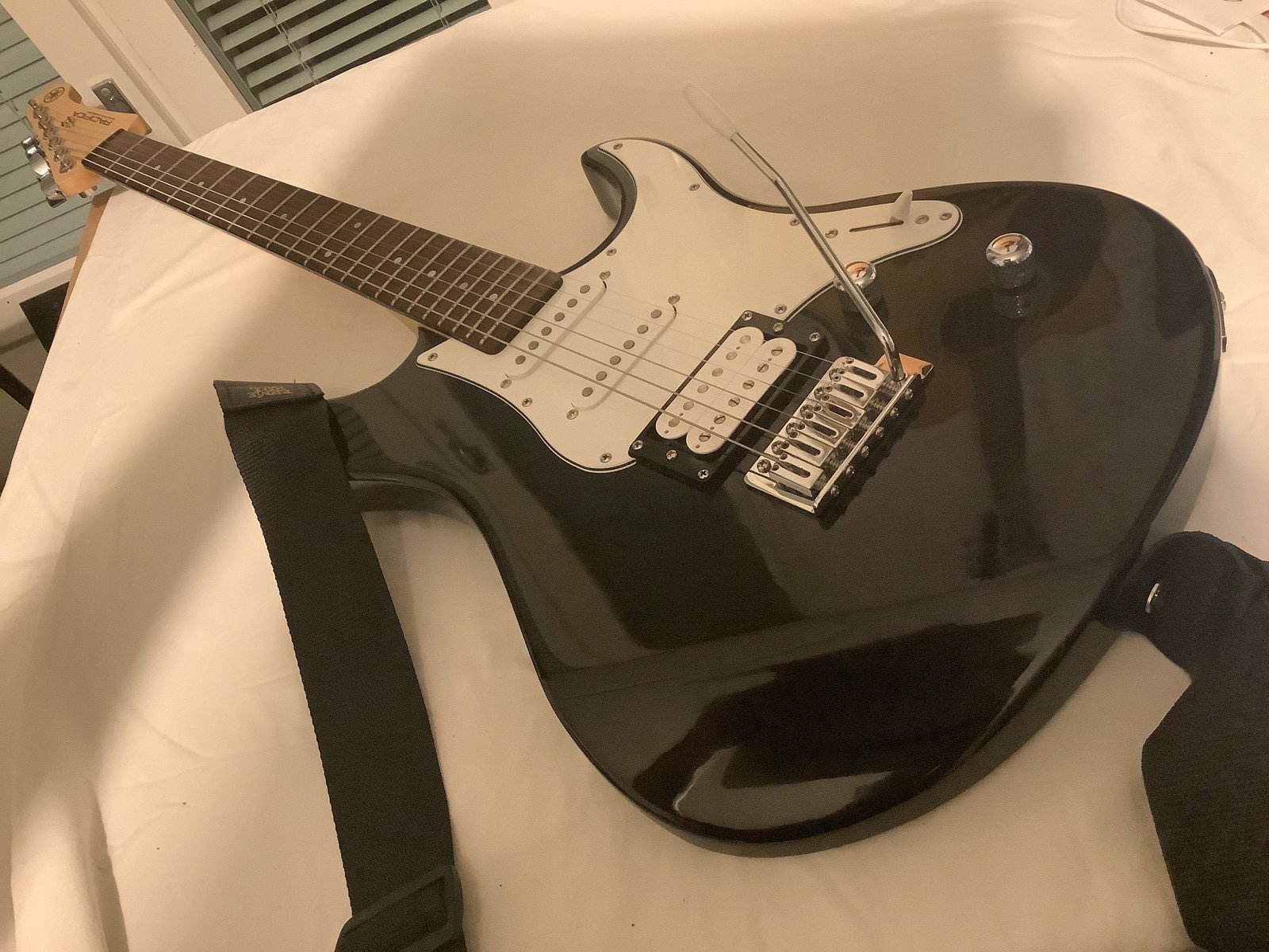 Yamaha Pacifica 112V, Micro Cube, gigbag ja ständi. Teräskieliseen akustiseen kitaraan vaihtuu. Hinta: 160 € | |