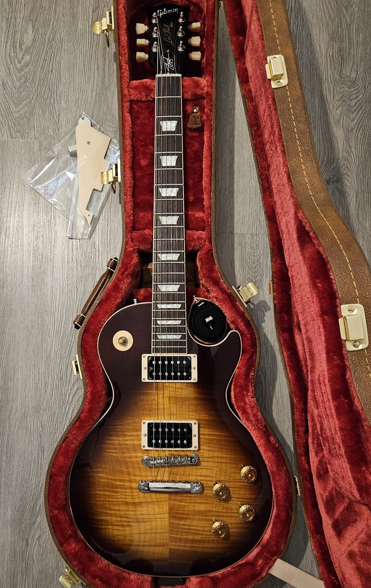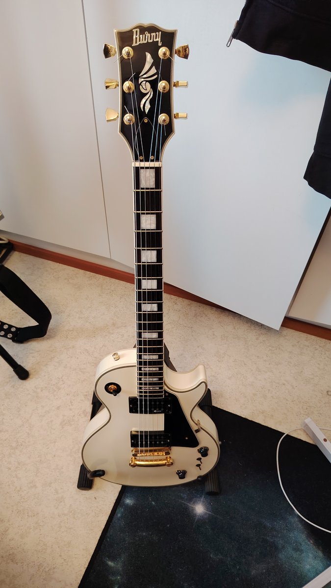 Burnyn upea näkemys Les Paulista. Kaulamikkinä on sustainer, jonka saa kahdella kuvassa olevalla vivulla ulvomaan ikuista nuottia, joka mahdollistaa viulumaisia äänimaailmoja. Ostettu Kitarakuusta käytettynä. Iästä ei ole tarkkaa tietoa, mutta kellastuminen kertoo usean vuosikymmenen iästä. Ostajalle 21 euron lähetyskulut. Pikaviestiä tai mailia #einorapidsmusic ät Gmail com Hinta: 680 € | |