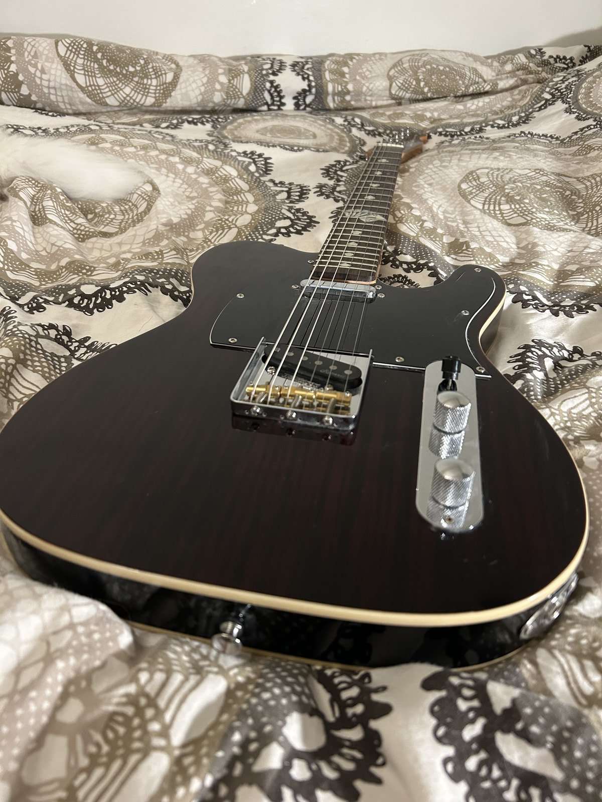 Tästä mainio puoliakustinen kasarilta, silloisesta Länsi-Saksasta. Mainio peli, juuri säädettynä huollettuna, otelauta öljyttynä. Kauheesti ei kuukkeli tästä kerro, mutta peli kertoo itse itsestään, olevansa vallan hyvä, Schallerin mikit, nyyberit Elixirin 10-46 kielet. Matalalla actionilla helpposoittoinen kaveri. Vähän ajan hammasta, jotain crackia lakassa, vaan ei mitään rakenteellista. Tässä on centerblock, joka ei kuitenkaan ole kanteen asti, joten akustinen soundi on sinne Gibsonin es330 suuntaan. Hankala tälle mitään hintaa sinänsä sanella, kun ei ole mitään verrokkia, mutta 750¤ lienee ihan ok. Kitaraa tässä on varmasti sen edestä, kuitenkin laatusoitin, onhan tämä jo ”vintage-ikäinenkin” eikä mitään uutta halpatuontijöötiä, jotka komian näköisiä, mutta mm. mikit ja elektroniikka aivan kuraa. Noutohommaa ja käteismaksu, laukkua ei ole, mutta kotiinkuljetukseen soveltuvan pussukan saa mukaan. Sähköisiin soundeihin voidaan tutustua treeniksellä Pohjois-Helsingissä, Fenderin combon läpi. Hinta: 750 € | |