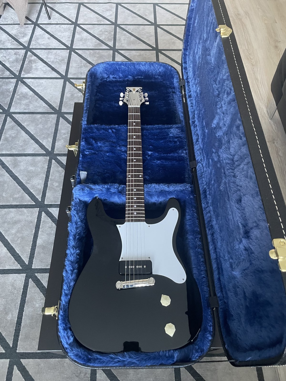 10v sitten ostin uutena. Meikäläisen kramppikädelle tuo kaula on käynyt liian ohueksi. Vuosikausia laukussa lojunut, kun en vaan ole halunnut laittaa myyntiin - jopa harkinnut custom kaulan teetättämistä, mutta jos nyt joku tähän ihastuisi, niin pystyn luopumaan. Vielä valmistetaan, mutta Airline on näemmä vastikään irtautunut Eastwoodista omaksi merkiksi. Kirjoitushetkellä valmistajan sivuilla uudesta Map DLX:sta (ilman laukkua) saa pulittaa melkein tuplat pyynnistä veroineen ja lähetyksineen (tullilaskuri kertoo). Virittimet vaihdettu Gothin lukollisiin. Bigsbyn jousena Reverend Soft Touch Spring (ihan paras, ihmeen huono saatavuus). Ylimääräisen "perusjousen" saa varaosaksi. Tuon valkean Thomannin hihnankin saa kylkiäiseksi. Eastwoodin kova laukku mukaan. Kaulataskussa soitinrakentajan tekemät shimmit, jotta kaula istuu tiukemmin. Joitain vuosia takaperin yksi kaularuuvi meni poikki - silloin korjautin eri soitinhuoltajalla, ja hän huomaamattaan korvasi kyseisen muita lyhyemmän ruuvin liian pitkällä, ja ruuvin kärki meni otelautamerkkiin asti - korjasi merkin, hyvä tuli (kuvissa tuo tokavika merkki). Kevyt kitara, pirun hyvä saundi, halutessaan saa todella matalan actionin ilman räminöitä, ei kolhuja/skraaduja, ja muitoiluahan ei voita mikään. Joensuun Niinivaaralla. Käy testaamassa. Lähetys +40¤ (kallista, mutta pakostakin mh:n "maxi pitkä"). Hinta: 700 € | |