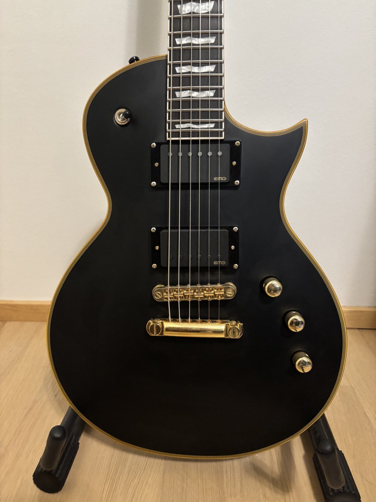 Aktiivimikit ei olekaan minun juttu, niin myynnissä erittäin hyväkuntoinen vuoden 2023 Koreassa tehty EC-1000 rosterinauhoilla. Tällä hetkellä kitarassa kiinni EMG 57/66 -setti, mutta voin vaihtaa tilalle myös alkuperäiset EMG 80/61. Voin myös myydä molemmilla mikkiseteillä, jolloin hintaan 100 ¤ lisää. Toimii pikaliittimillä, joten helppo ja nopea vaihtaa itse. Mukaan tulee silloin lisäksi ylimääräiset kaapelit ja potikat. Sopii myös vaihto samaan malliin (rosterinauhat, Koreassa tehty) Seymour Duncanin passiivimikeillä. Ehkä myös LP-tyyppiset kitarat P90-mikeillä kiinnostaa. Myynti/vaihto mieluiten kasvotusten. Hinta: 750 € | |