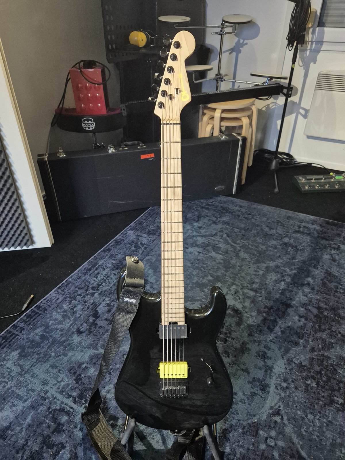 Myynnissä ilmeisen vähän käytetty, kuin kukkaa kämmenellä pidetty Charvel. Ai että kun harmittaa luopua, mutta Evertunen kutsu on vahva. Kitara ollut ennen minua yhdellä tai kahdella omistajalla, minulla vajaat neljä kuukautta, säädöt drop Bb 12-62 setillä tehty n kuukausi sitten Musamaailmassa. Alla specsit. Testit Helsingin Kalliossa Neural DSPn Nolly plugarin läpi, tarkemmat kuvat pyydettäessä, yhteydenotot YV. Alder body Maple neck Maple fretboard Neck finish: Hand applied matt urethane varnish Neck profile: Speed neck with rolled fingerboard edges Licensed Fender Stratocaster headstock Compound fretboard radius: 304.8 - 406.4 mm (12" - 16") Nut width: 42.86 mm (1.6875") Graph Tech TUSQ XL nut 22 Jumbo frets Pickups: EMG 57 (bridge) and EMG 66 (neck) humbuckers Volume control 3-Way blade switch for pickup selection Charvel HT6 string-through-body hardtail bridge Charvel-branded DieCast locking tuners Hinta: 750 € | |