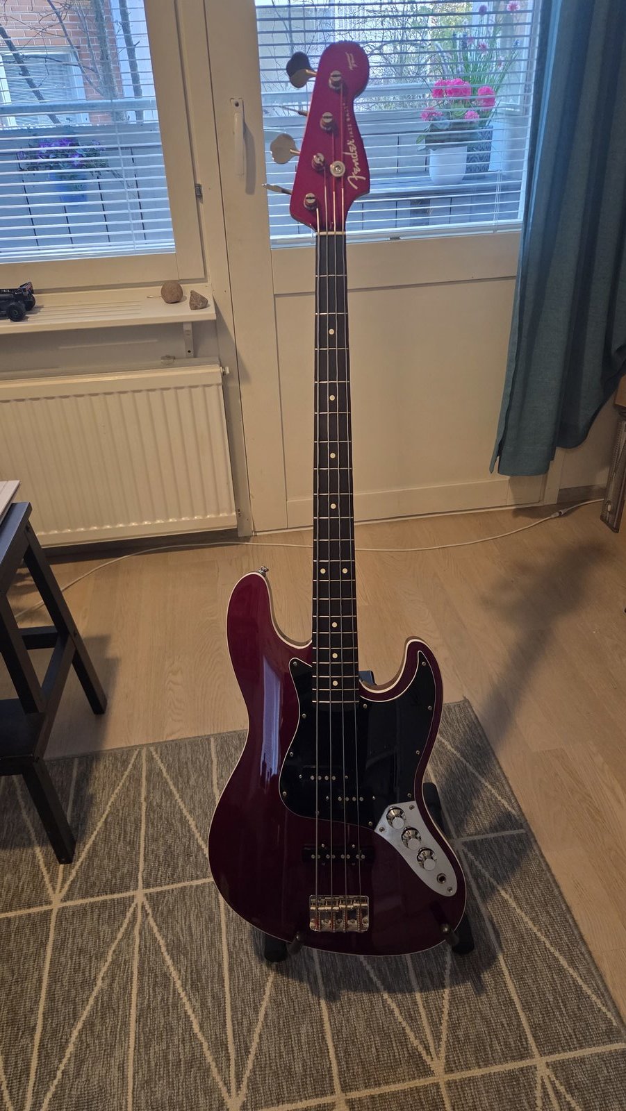 Hieno candy apple red Fender Aerodyne PJ bass myynnissä. Made in Japan. Basso on siisti ja hyväkuntoinen, joitain pinta naarmuja takana kun läheltä katselee. Löytyy myös EMG:n Geezer Butler mikit lisähinnasta halutessaan mukaan. Vaihdossa saman hintaluokan Fender Jazz bass tai hyvä kevyt ja tehokas bassonuppi. Pehmeä Fenderin pussi mukaan.... Hinta: 1100 € | |