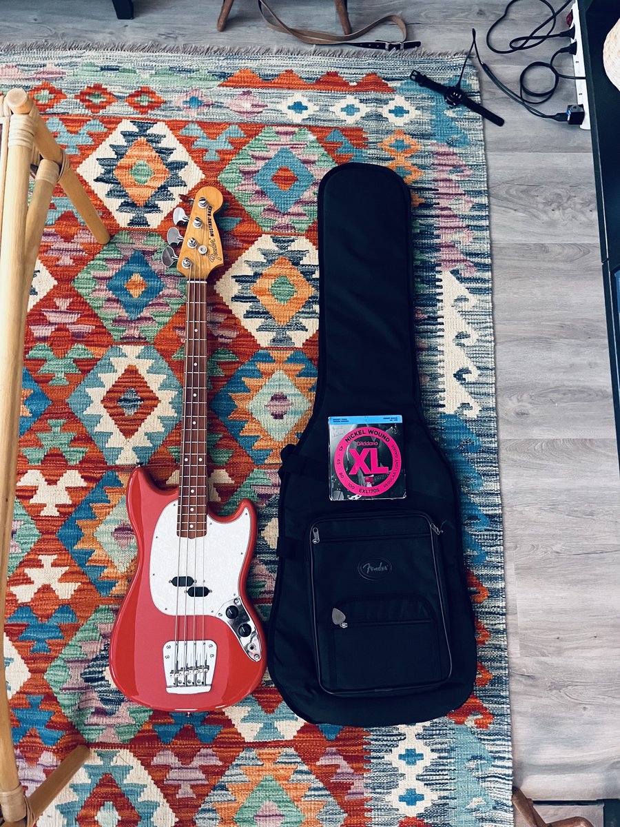 Great short scale bass. Perfect for guitar players (home studio, recording). Mint condition. Upgraded electronics (pots and wiring) and pick guard (original pick guard included). Comes with the original fender gig bag and guitar strap. No trades. Hinta: 600 € | |