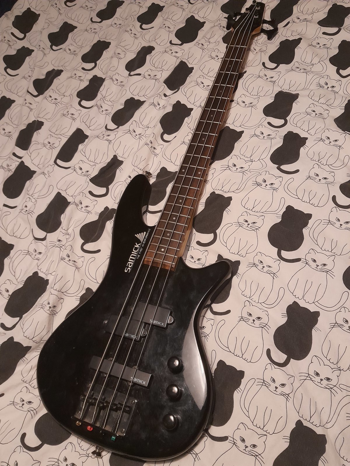 | Lyhytskaalainen pikkubasso. Uudet 105-45 kielet. Harvoin tarjolla. Valmistettu 1992 Koreassa. Mahtuu sopivasti kitaralaukkuun ja ei soundissa häviä isommilleen. Hinta: 295 € | |