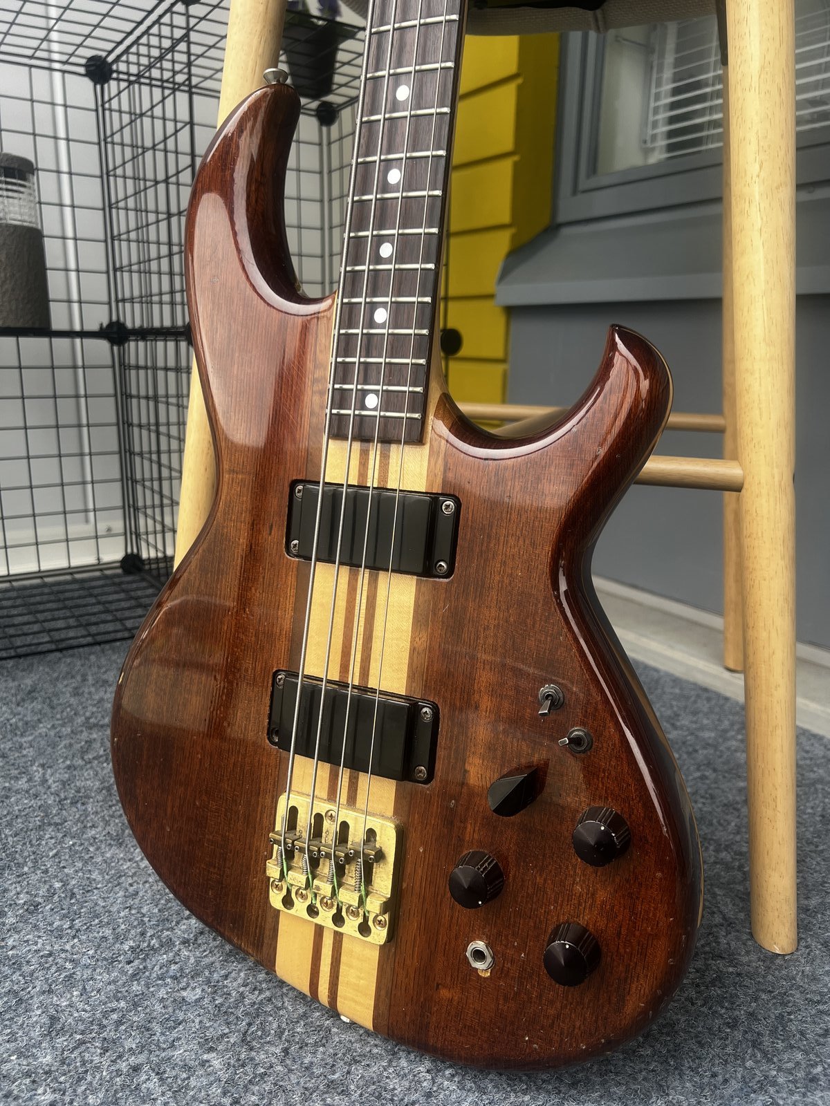 | Japanilaisen soitinrakennuksen kulta-ajan passiivilippulaiva on kulttimaineessa syystä. Läpi rungon kaula on vaaahteraa ja pähkinäpuuta, runko tiiviskuvioista japanilaista saarnia. Pianomainen kirkkaus ja sustain - työn jälkeä on maailmalla verrattuna Alembiceihin. MB-1 humbuckerit tuotannon alkupäästä toimittavat kaiken mitä voi keksiä. Elektroniikoissa Vol-Vol-Tone, mikkivalitsin, rinnan/sarjaan -kytkin ja mikrofonien puolitus. Saundeista saa ruuvattua inspiraatiota niin presarista, jazzarista kuin Rickenbackeristakin; todellinen kaikkien genrejen jyrä. Basso on painava, mutta täydellisesti tasapainotettu ja erittäin mukava soittaa. 45 vuotta aktiivista soittoa on jättänyt pintapuolisia jälkiä roppakaupalla, mutta teknisiä puutteita ei ole. Mukana sata kiertuetta nähnyt Arian aikalainen laukku. Hinta: 1450 € | |