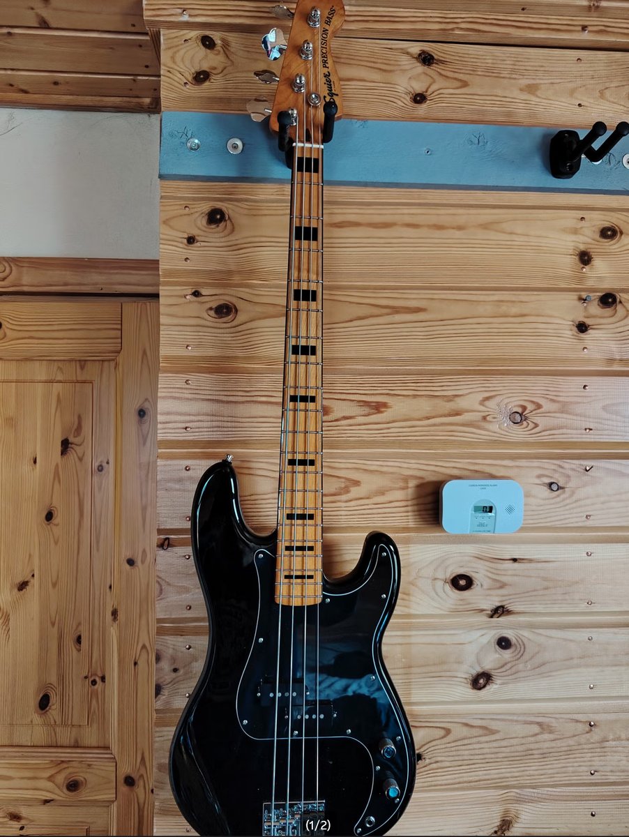 | Hieno ja harvinainen Squierin medium scale -presari eli 32-tuumainen basso. Laadukasta E-sarjaa 80-luvun alkupuolelta. Ikäisekseen todella hyvässä kunnossa. Mukaan ihanan ruskea Fenderin nahkapussukka JA alkuperäiset basson japaninkieliset lippulappuset. Nouto Keravalta. Hinta: 900 € | |