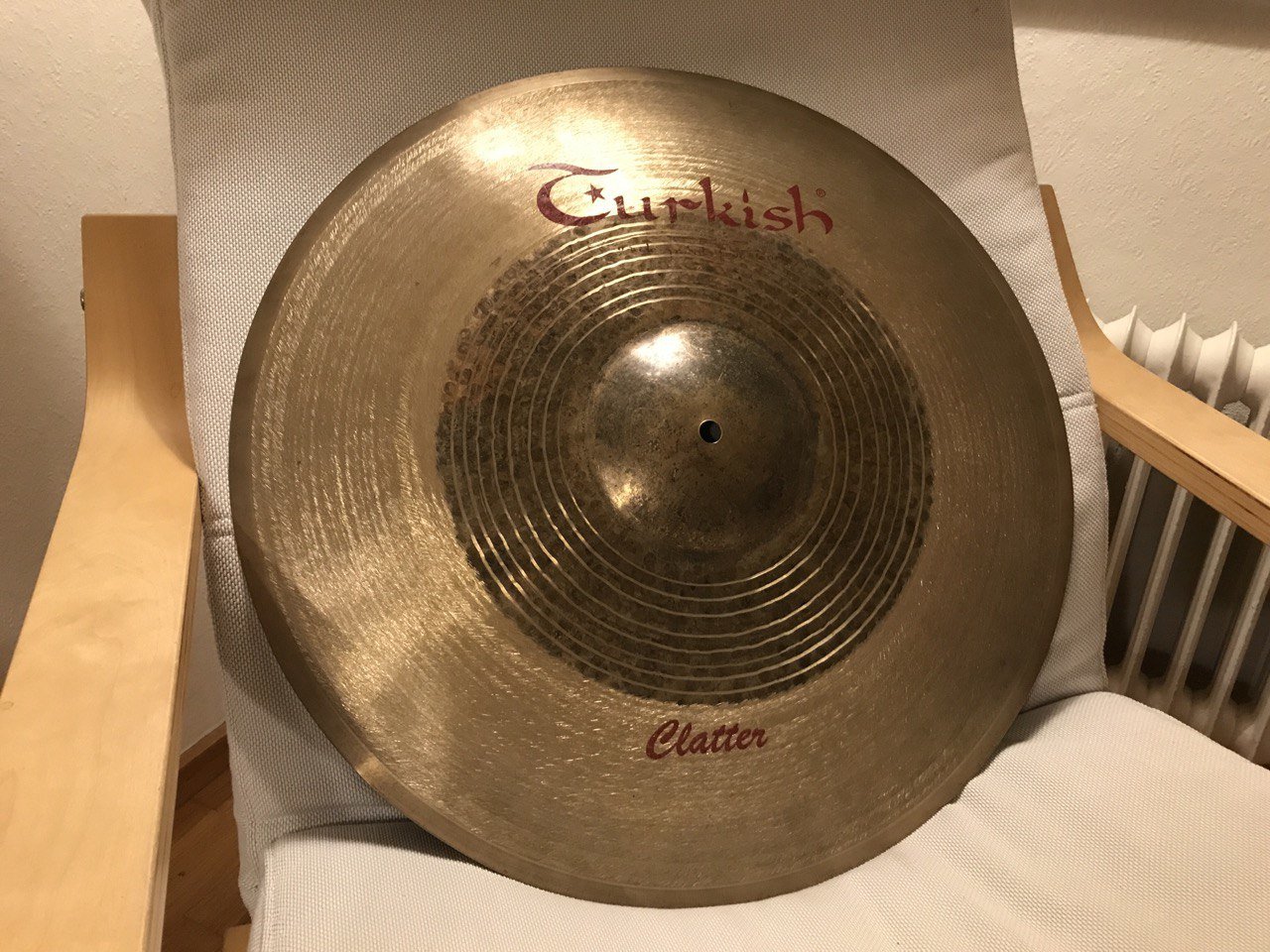| Kahden sisälohkeaman verran porailtu/pehmeäksi hiottu hyvä ja edelleen oikein iskuisasti ja vapaasti soiva pelti kaupan. Saa pyytää kuvia/videota/soittonäytettä. Yritän tehdä pikapuoliin tästä ja toisista pelleistä soittoklipin Youtubeen. Keyhole on täysin kunnossa. Tuo ohut kaari, joka menee pellin yläpinnan sisäosassa juovien mukaisesti, on ollut pellissä jo aika lailla alkusoitosta lähtien eikä vaikuta mitenkään sointiin, ei tunnu edes sormella. Kaupan päälle halutessasi saat messiin tollaisen halvan pikku-chinan, joka crashin kanssa/alla tekee yllättävän hyvänkuuloisen trash stackin. Pyyntihinnan päälle postikulut tai nouto Lahdesta. Hinta: 100 € | |