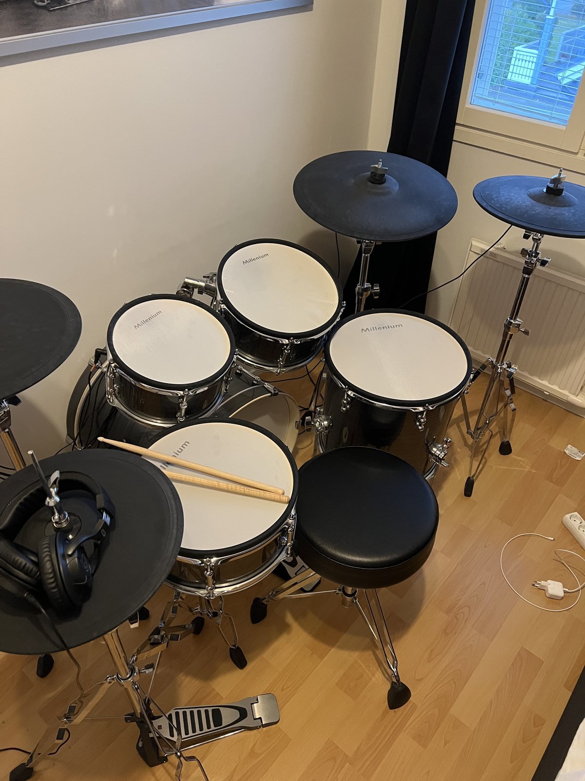 | Uuden veroiset pro sähkörummut myyntiin. Ostettu joskus yhtä keikkaa varten, joten sen jälkeen jääneet käyttämättä. koko paketti eli rummut, telineet, aivo. Hinta: 1400 € | |