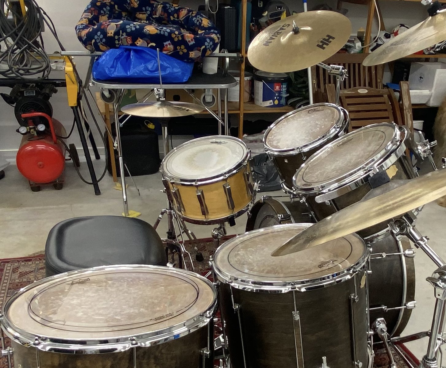 | Kumu rumpusetti sisältää basarin 24, tom-tomit 12,14,16 ja 18. Valmistettu käsityönä mittatilauksena suomalaisesta koivusta. Ludwig coliseum virveli ja Sabian lautaset 14, 16, 18 ja 22. Niihin tarvittavat Taman telineet ja bedaali. Yamaha-merkkinen säädettävä rumpujakkara. Kantolaukut niin rumpuihin kuin lautasille ja telineille. Hinta: 3300 € | |