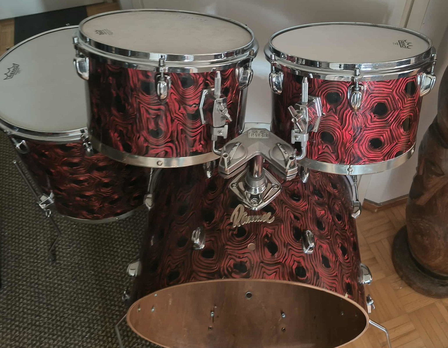 | Hienokuntoiset Sonor Force kannut ylimääräisinä. Punainen satin petsipinta. Koot: 20”, 10”, 12” ja 14” Lattiatomin jalat ja tomikiinkike basarinnpäälle mukaan. Hinta: 200 € | |