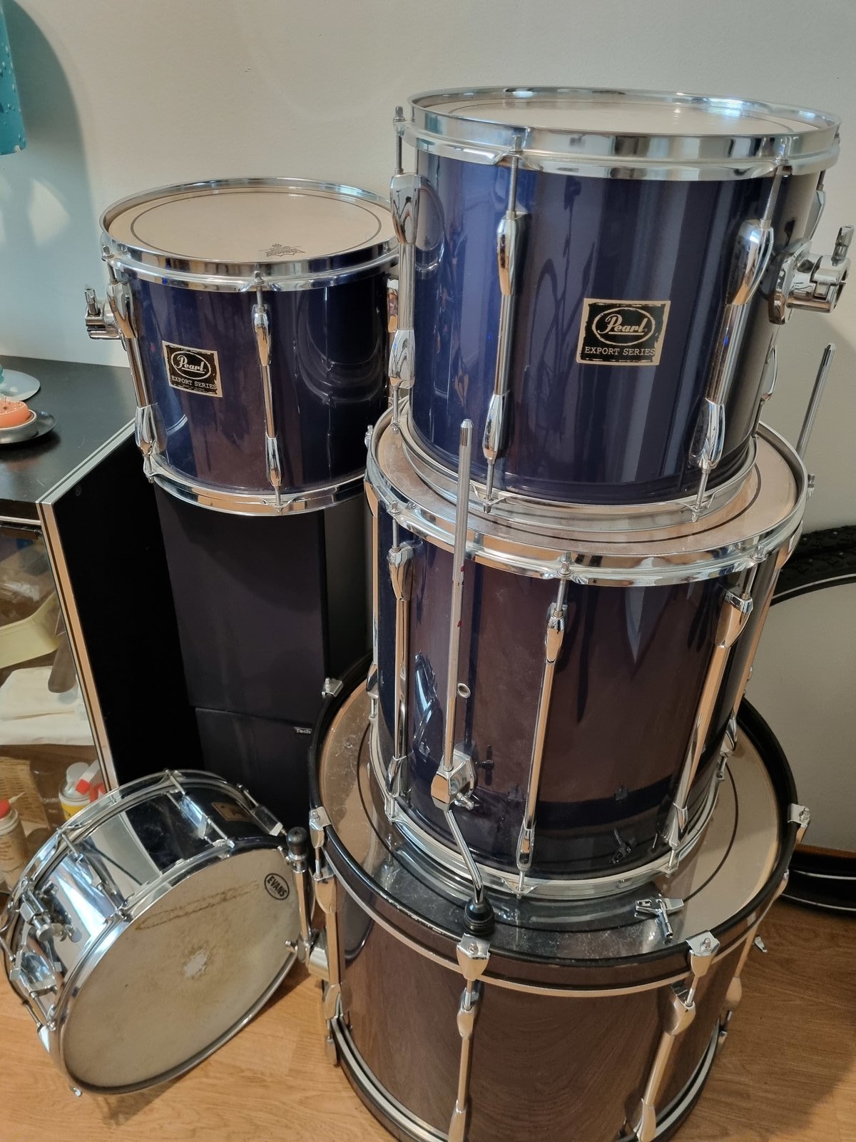 Siisti Pearl Export setti alkuperäisellä snarella, mukaan läjä tukevia telineitä: ainakin snare teline ja symbaalitelineitä. Setti ollut pitkään käyttämättä. Ota yhteyttä pikaviestillä! Hinta: 200 € | |