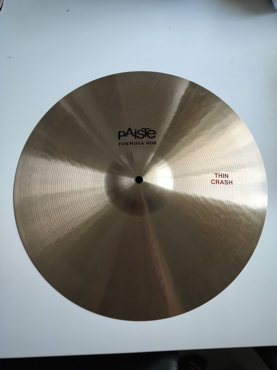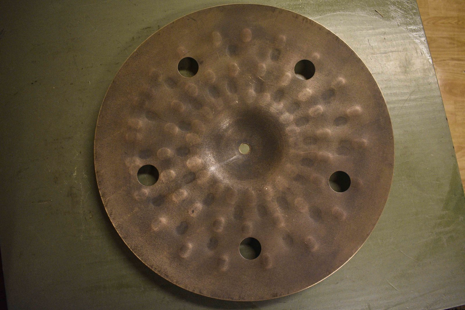 | Kahden sisälohkeaman verran porailtu/pehmeäksi hiottu hyvä ja edelleen oikein iskuisasti ja vapaasti soiva pelti kaupan.  Saa pyytää lisäkuvia/videota/soittonäytettä. Yritän tehdä vielä jossain välissä tästä ja toisista pelleistä soittoklipin Youtubeen. Kaupan päälle saat messiin tollaisen semi vaatimattoman pikku-chinan, joka crashin kanssa, sen alla tekee yllättävän hyvänkuuloisen trash stackin. Pyyntihinnan päälle postikulut tai nouto Lahdesta. Hinta: 100 €  | |