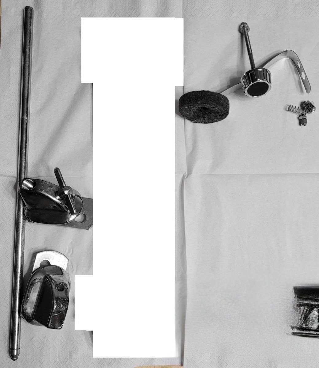 | Myyn joitain bassorummun osia jos on tarvetta: 1. kuvassa: A. Slingerlandin tikkujalkojen muhvi. Muuten alkuperäiset kiinnitysruuveineen ja vastakappaleineen, mutta rumpalista katsottuna oikeanpuoleisen muhvin tikkujalan lukitusruuvi on korvattu 10mm siipiruuvilla koska vanha noin 8mm kierre oli korkannut. Tikkujalkoja ei ole. Tämä pari 30 euroa/pari, 20 euroa/kpl B. Joku tomi tai snare dempparin osia, ehkä vanhasta Japan setistä, 2 euroa. 2. Kuvassa C. Tarjolla hihatille yläpellin pidike (clutch) jos puuttuu, perussettiä mutta toimii ja hyvät huovat. Ja helpottaahan tämä hihat symbaalin vaihtoa jos käytössä on vain yksi teline ja kahdet hihatparit. Hinta 5 euroa. Lisäksi: D. Slingerland tomin demppari alkuperäinen, kaikilla alkuperäisillä osilla (ei kuvassa) 40 euroa. Postitan mutta nouto länsi- Vantaalta onnistuu. Soitot, tekstari, whatsapp (040 8301371). Pikaviesteissä voi olla viivettä. Hinta: 2 € | |