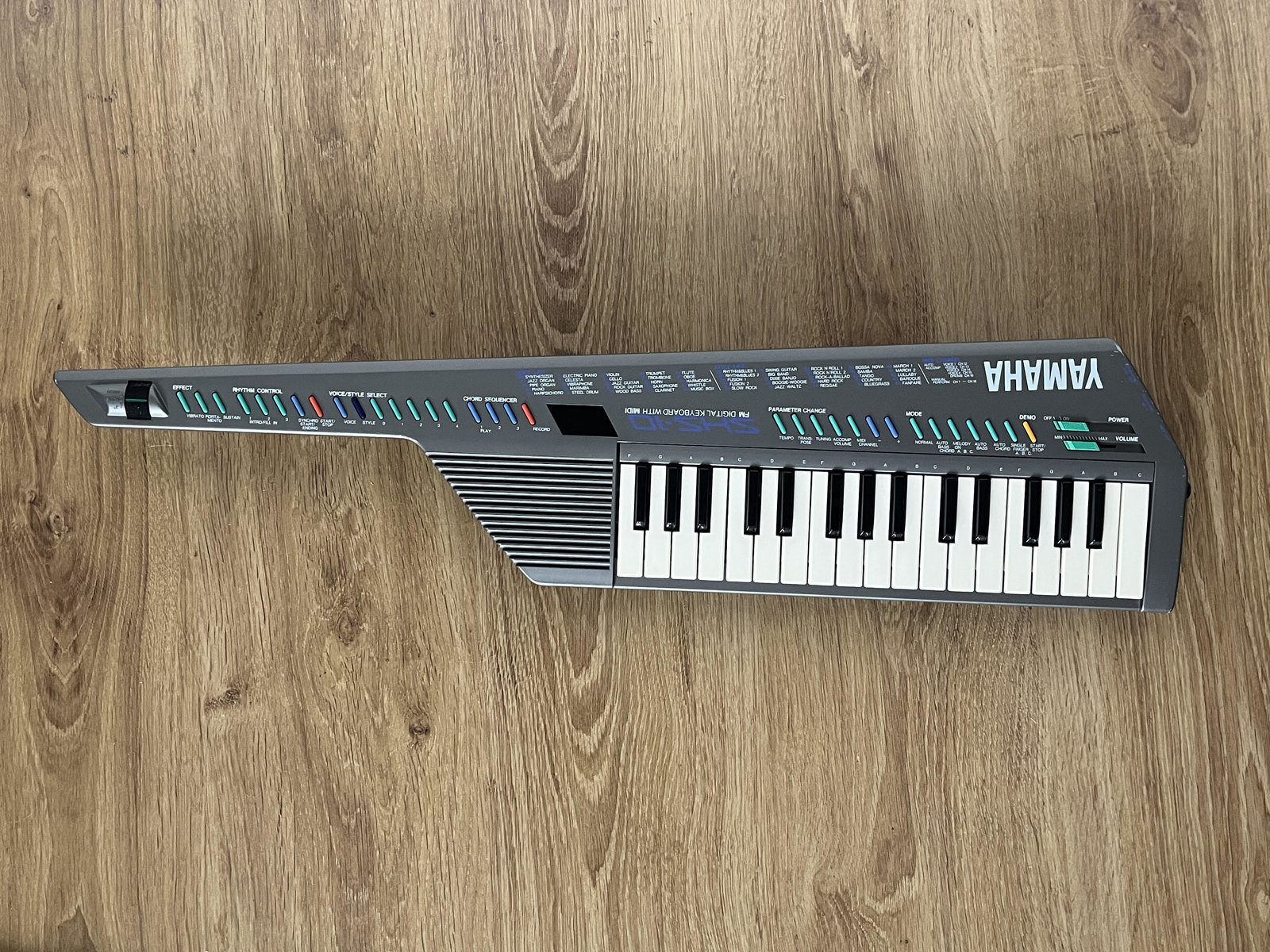 Tästä mainio retrofuturistinen keytar kasarihenkiselle! Sisuksista löytyy 2-operaattorinen FM-syna minikoskettimilla ja rytmikoneella tai sitten voit käyttää midi-ohjaimena. Mukana virtalähde. Laite on puhdistettu sisältä, testattu ja toimivaksi todettu. Alkuperäisessä laatikossa. Yhteydenotot mieluiten s-postilla. Hinta: 150 € | |