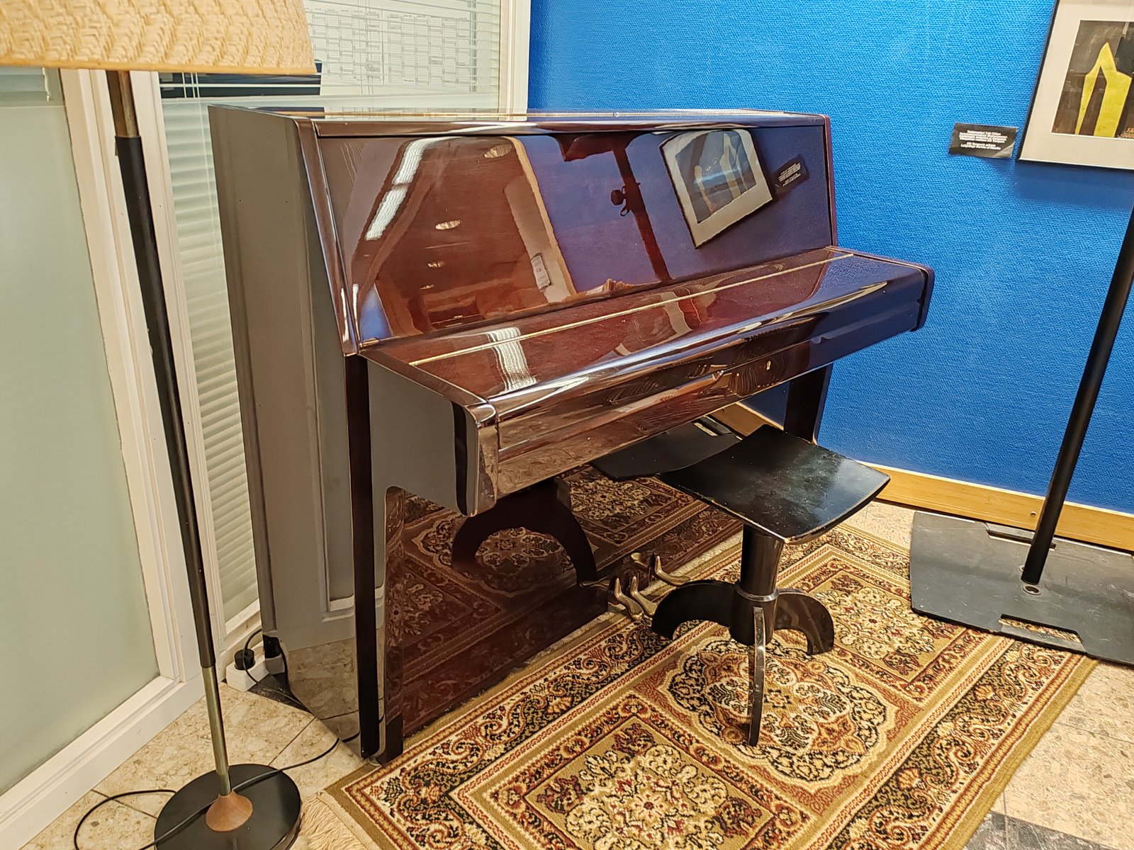 Myydään Samick-merkkinen akustinen piano teatterimme muuton vuoksi. Soitin on vuodelta 1982 ja on hyvässä kunnossa. Tuoli annetaan kaupan päälle. Piano viritetty viimeksi maaliskuussa 2025. Mahonki, kiiltävä, kork. 107 cm, lev. 147 cm, syv. 60 cm. Paino 198 kg. Tervetuloa koesoittamaan pianoa! Pianosta voi myös tehdä tarjouksen. Hinta: 500 € | |