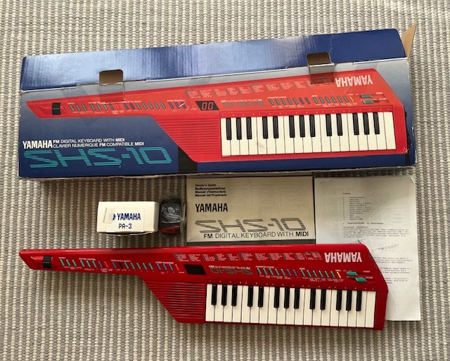 | Myydään hienossa kunnossa oleva Yamaha SHS-10 FM-keytar, josta löytyy myös midi out. Mukana alkuperäinen pakkaus, muuntaja, hihna ja manuaalit (myös suomenkielinen versio). Tämä laite on ikäisekseen hienossa kunnossa mm. hihnakin on käyttämätön. Noutajalle testausmahdollisuus. Pikaviestillä alkuun. Hinta: 190 € | |