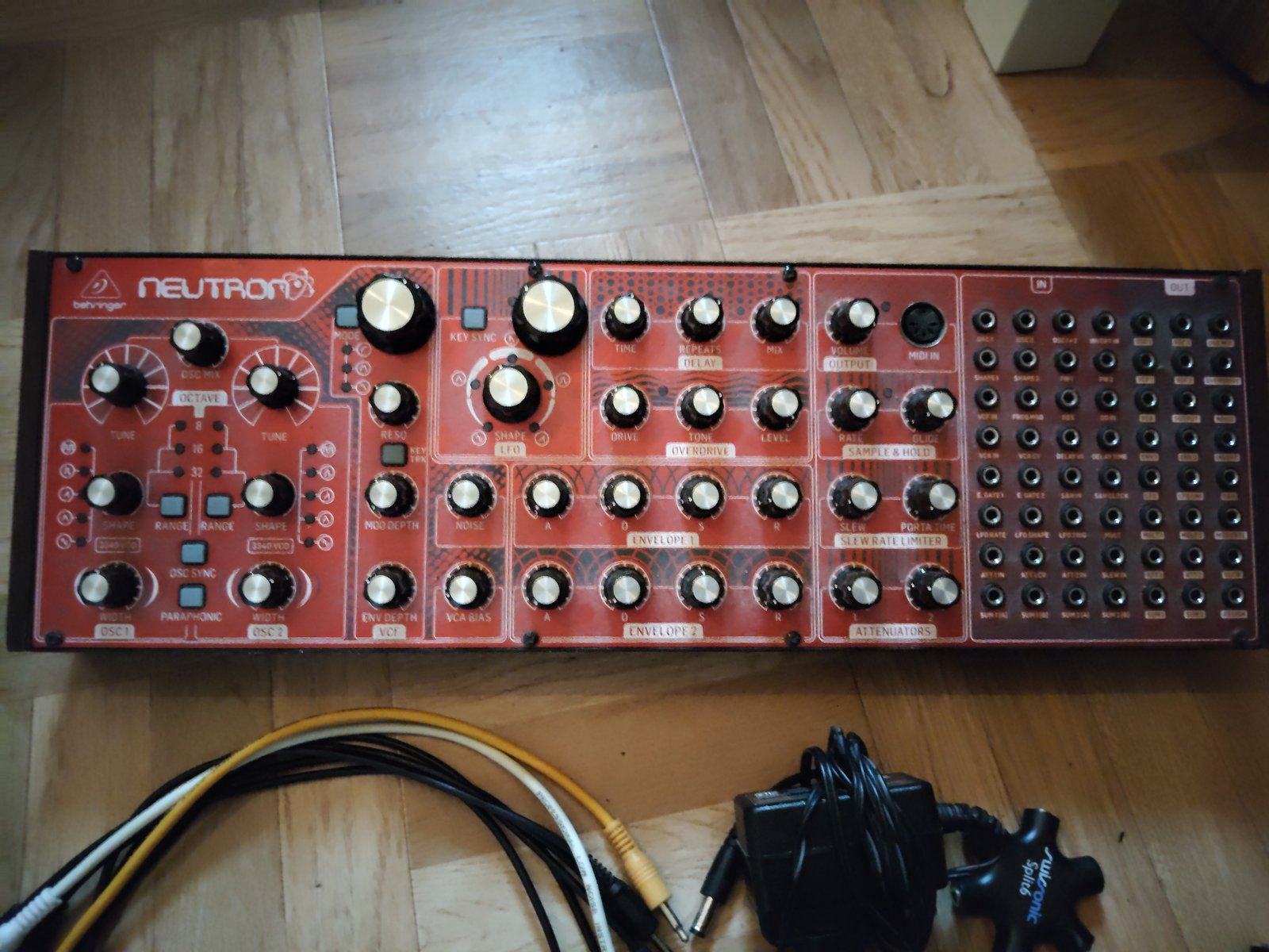 Myydään Behringer Neutron semimodulaarinen syna. Käy ja kukkuu kuten pitääkin. Ollut koko ajan kiinni isommassa kokonaisuudessa joten siistissä kunnossa. Mukaan virtalähde, muutama patchkaapeli ja pari jakajaa. Hinta: 220 € | |