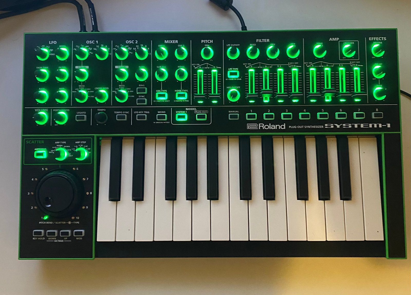 Uudenveroinen Roland System-1 syntetisaattori myynnissä. Laitteesta löytyy useampi oskillaatori, LFO, arpeggiaattori sekä viive- ja kaikueffektit. Laatikosta löytyy syntetisaattoriin oma USB-kaapeli ja virtapiuha sekä kaupan päällä kaksi audiokaapelia (Roland RCC-10-TRTR) ja kaksi 5-pinnin XLR kaapelia joilla saa MIDI-yhteyden useamman laitteen välille. Kuljetus onnistuu Pääkaupunkiseudulla tai nouto Tikkurilasta. Hinta: 225 € | |