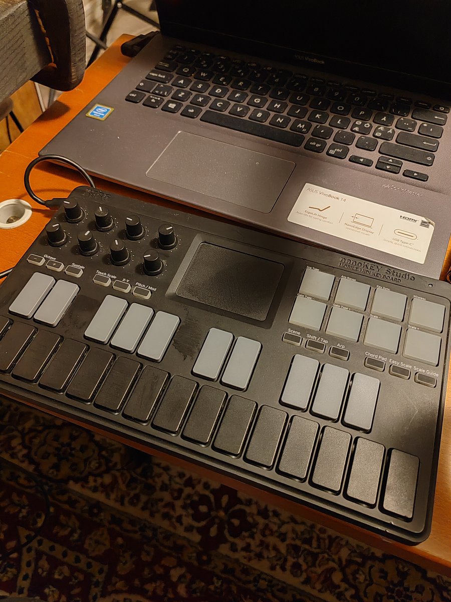 Mainio midikiippari joka osaa ottaa virtansa USB-väylästä. Löytyy pädit, enkooderit ja liu-ut kaikenlaiseen puuhasteluun. Kulkee näppärässä Thomannin pussukassa. Vain nouto Turun Pohjolasta, pikaviestillä liikkeelle. Hinta: 80 € | |